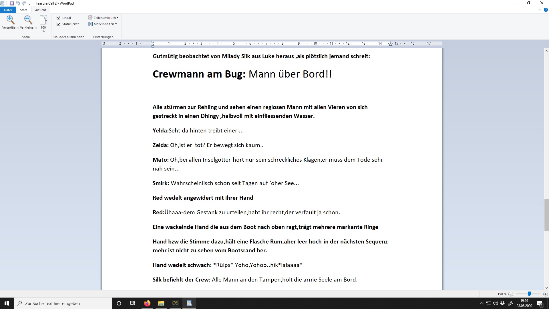 Dann geht das echte Geschreibe los und je nachdem ,kann sowas einige Monate dauern bis ich es das Drehbuch geschrieben  habe.Hier ein Auszug aus eins: