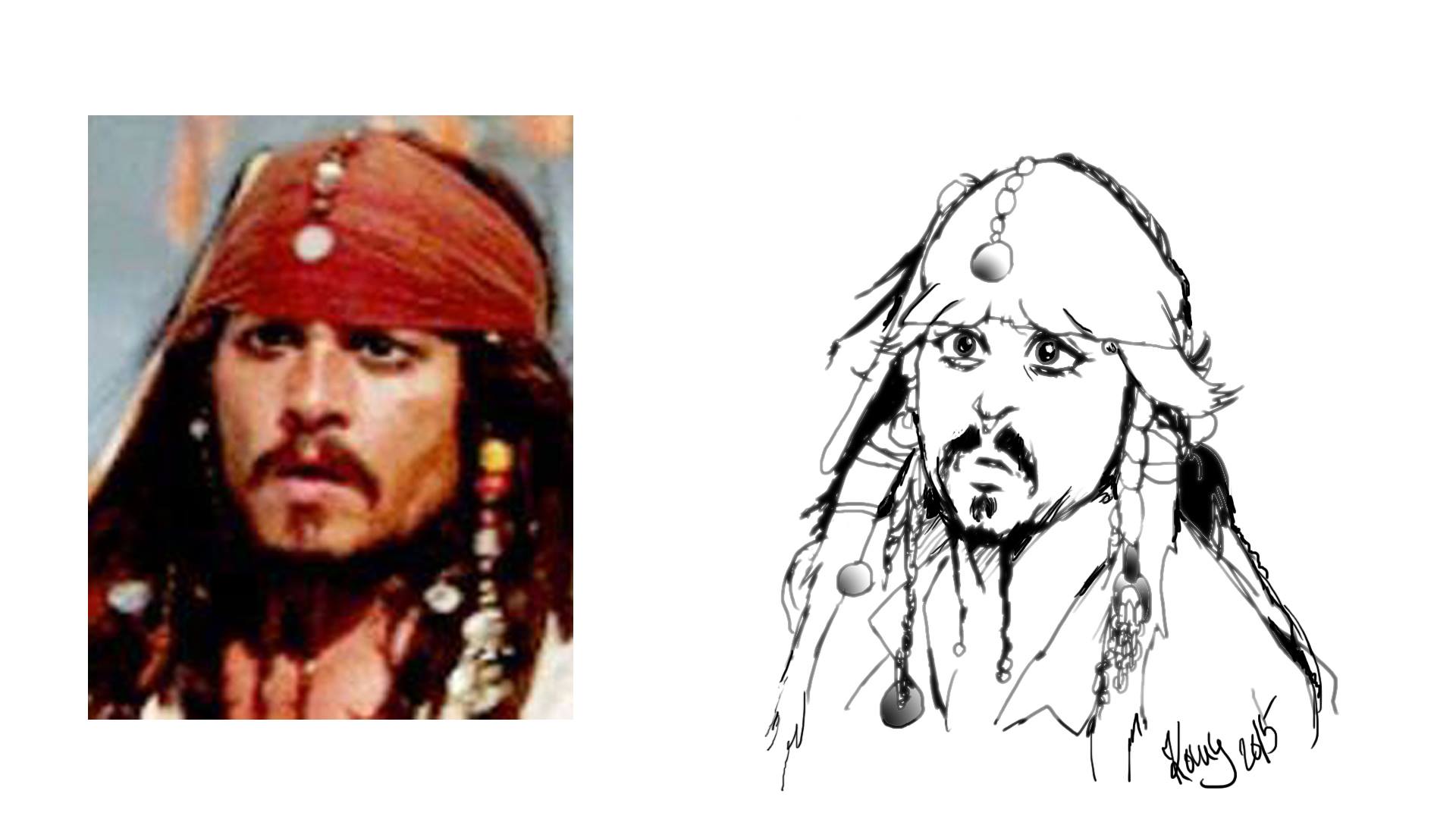 und die sollten schon mal gezeichnet werden .Die Hauptfigur (in den Fall) Captain Jack Sparrow sieht ja in echt so aus---->Captain Jack Sparrow
