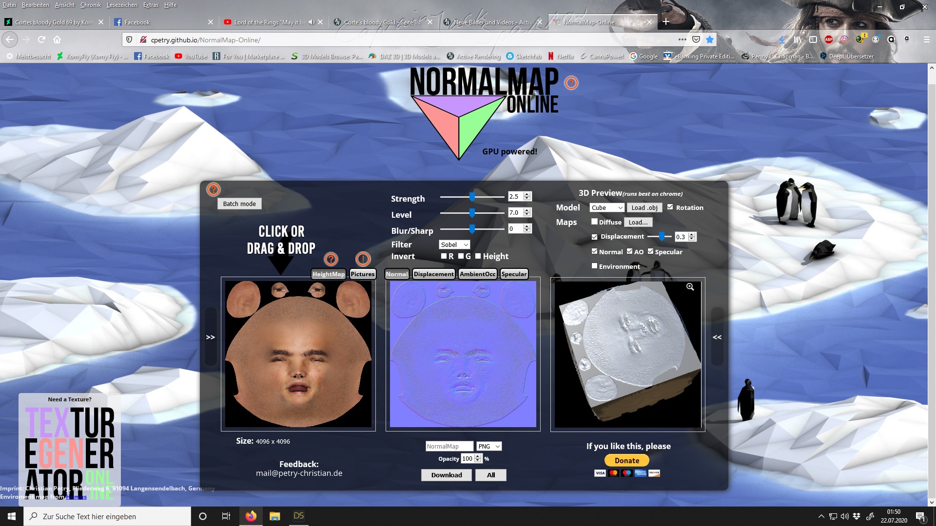 Ihr seit es leid,dass das Gesicht von euren Chara so glatt daher kommt.Nun benutzt die Seite Normal Map Online zum erstellen der Texturen
