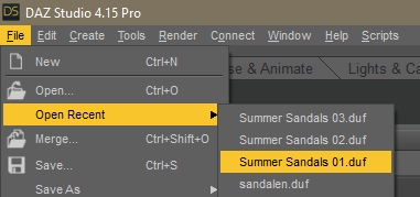 Laut Screenshot öffnest Du eine neue Szene, in der sich die Sandalen befinden. Was Du aber eigentlich benötigst, ist, dass Du die Sandalen aus deinem Content lädst. Was sind das für sandalen, für welche Figur sind die ursprünglich?