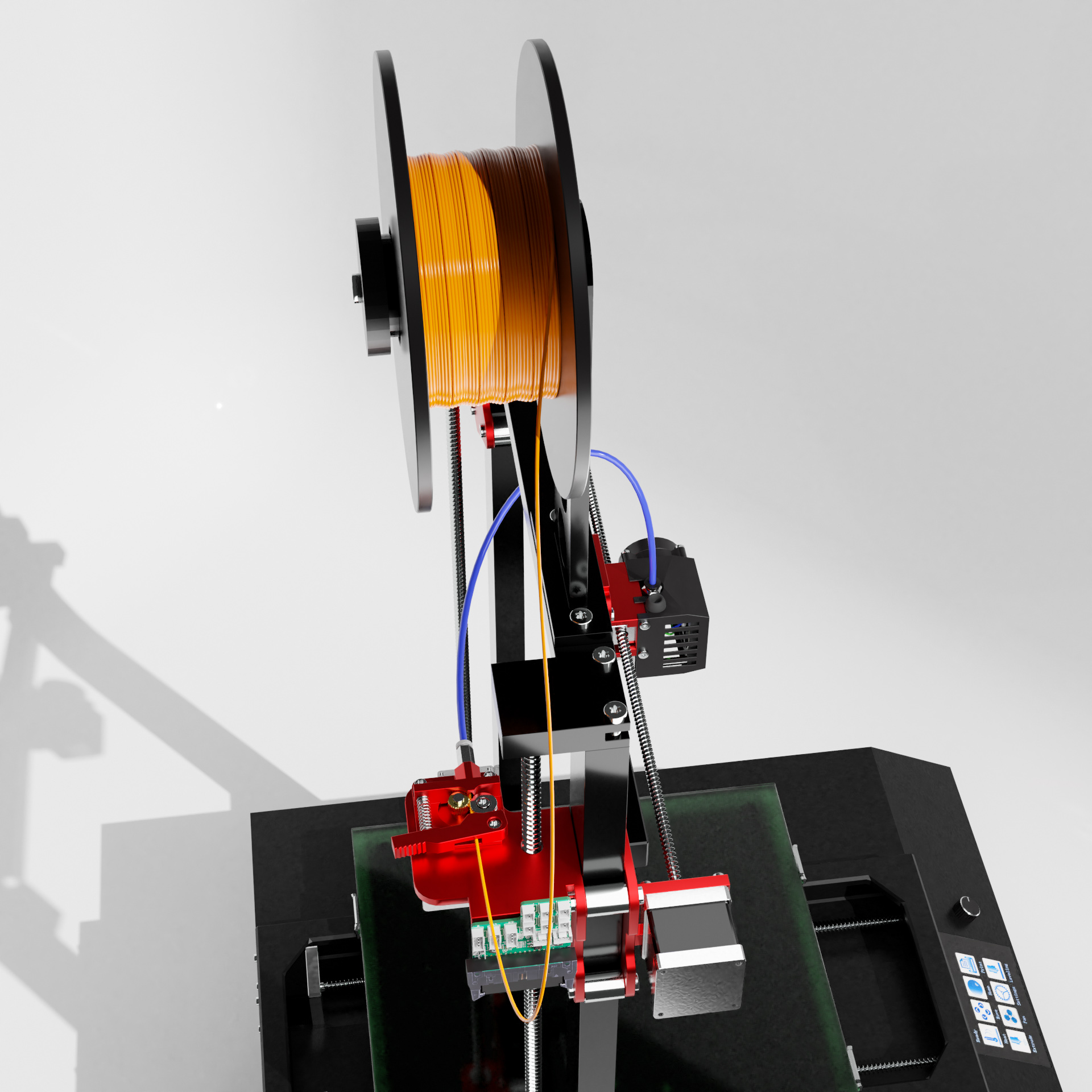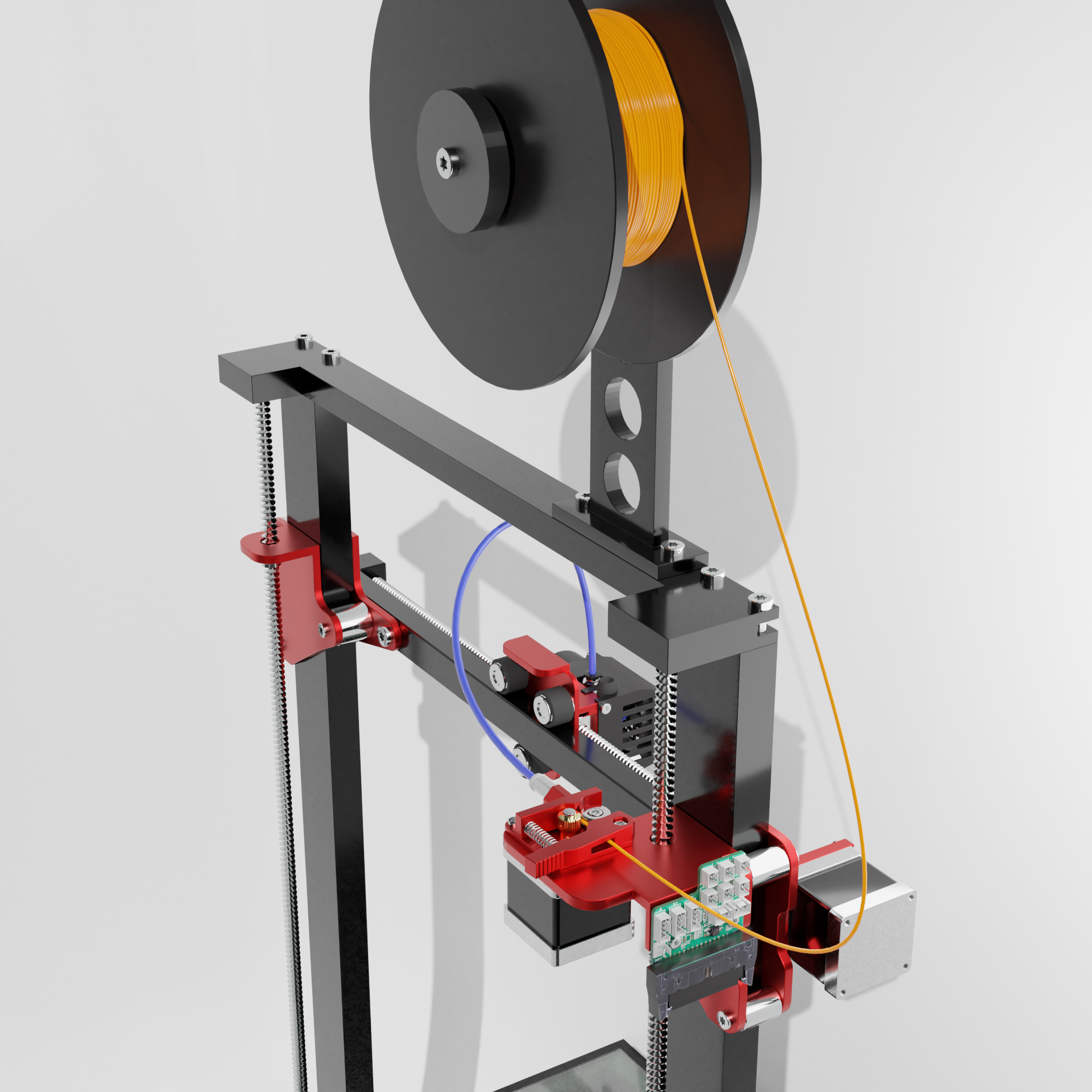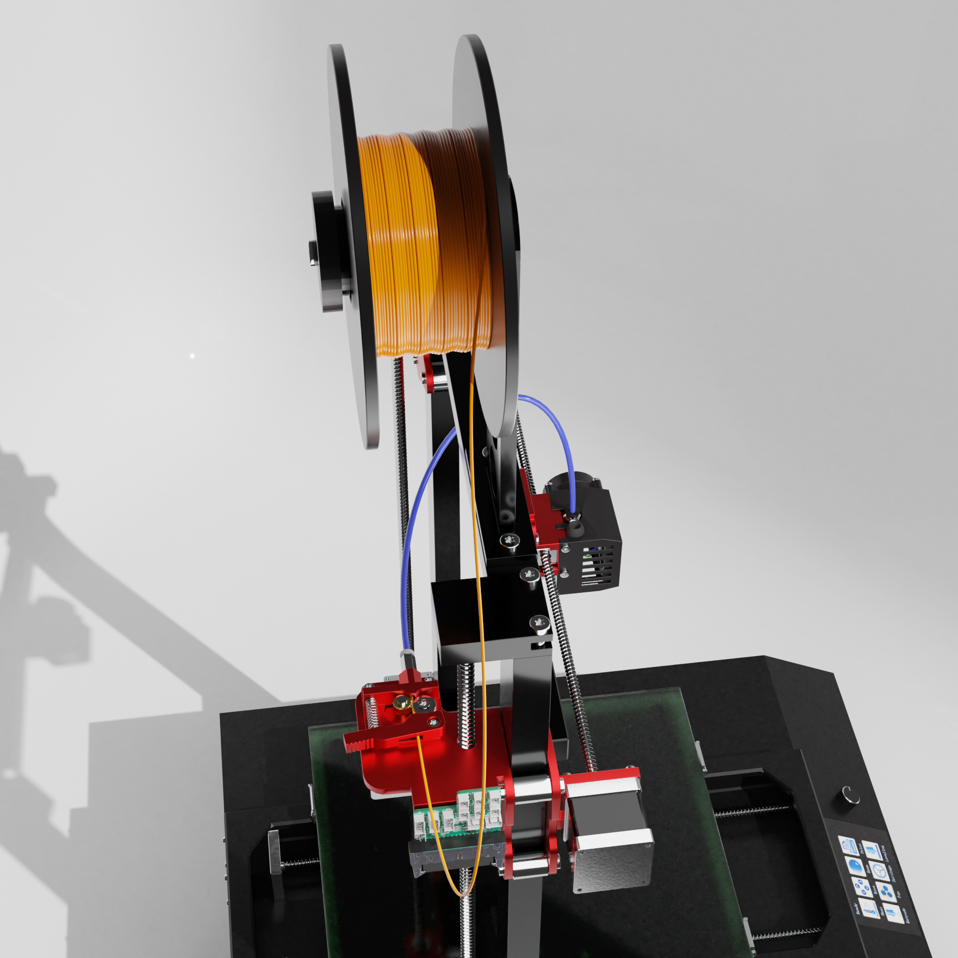 Jep. So wie Deine Konstruktion aufgebaut ist, würde es ein "Verhaken" des Filamentes hervorrufen, denn das ist recht steif und lässt sich nur in relativ weitem Radius verbiegen. Hier müsste es sich ja um fast 90 Grad in kürzester Entfernung zum Eintritt verbiegen, wenn es gemäß Rollenposition senkrecht von oben kommend zugeführt würde. Alternative zur Umlenkrolle wäre, die Spender-Rolle insgesamt ein Stück weit nach vorne zu versetzen, dann hätte das Rendi durch seine Eigensteifheit ausreichend Platz, einen entsprechenden Bogen bis zum Eintritt zu bilden.