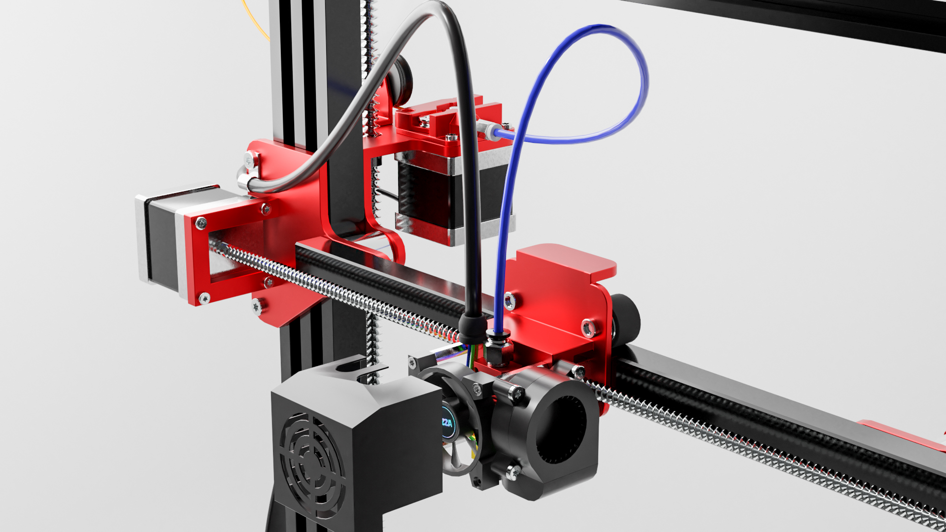 Mein Projekt 3D Drucker (Model) ist abgeschlossen und auf Blenderkit Hochgeladen. Die Schläuche und Kabel sind mit haken versehen. X achse, Y achse und Z achse sind an jeweils ein Null objekt gebunden so das es leicht ist zu animieren.