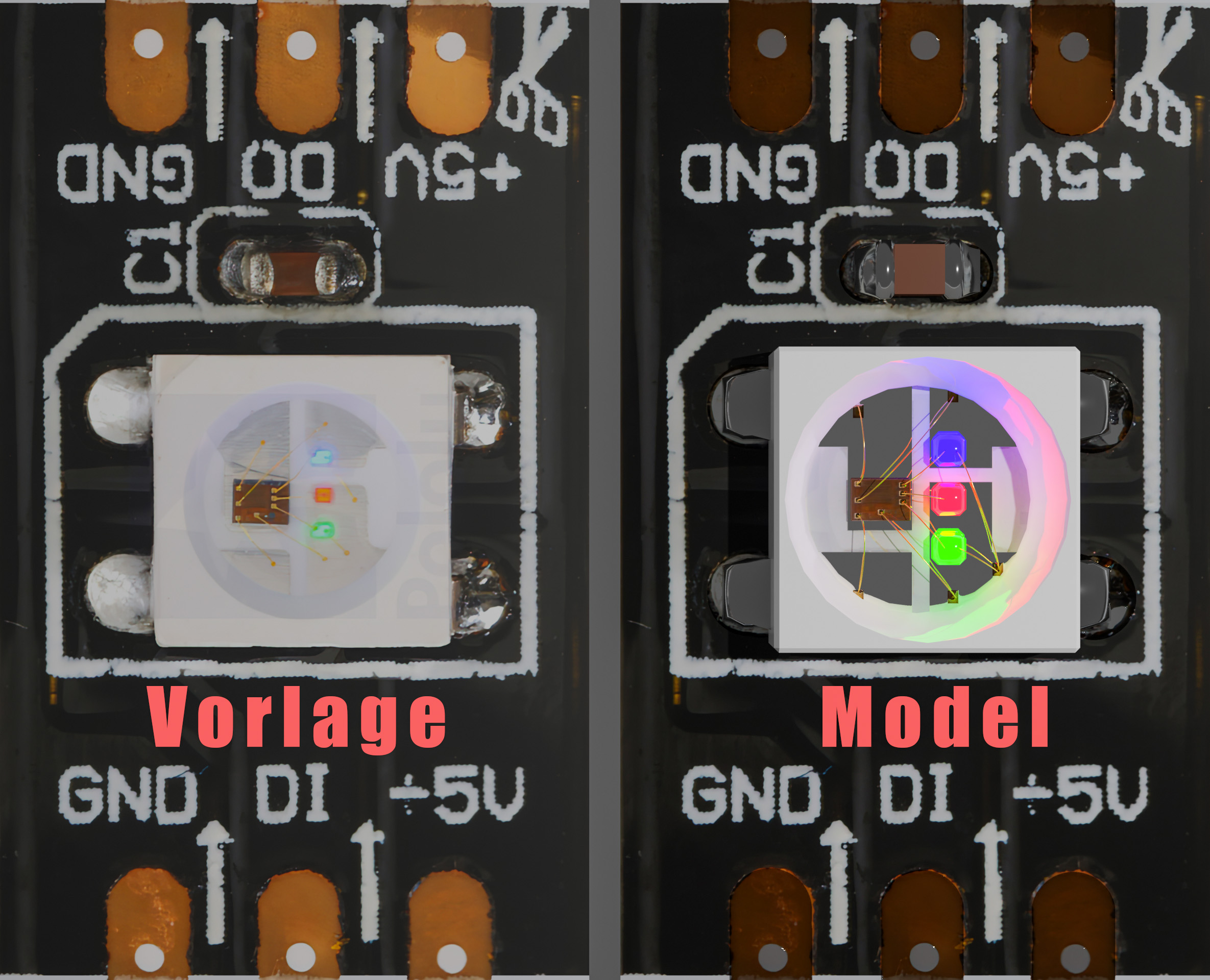 Ich habe mich so gut wie mir möglich an das original gehalten nur das ich die Einzel Dioden R, G, B grösser gemacht habe um die Licht ausbeute zu erhöhen.