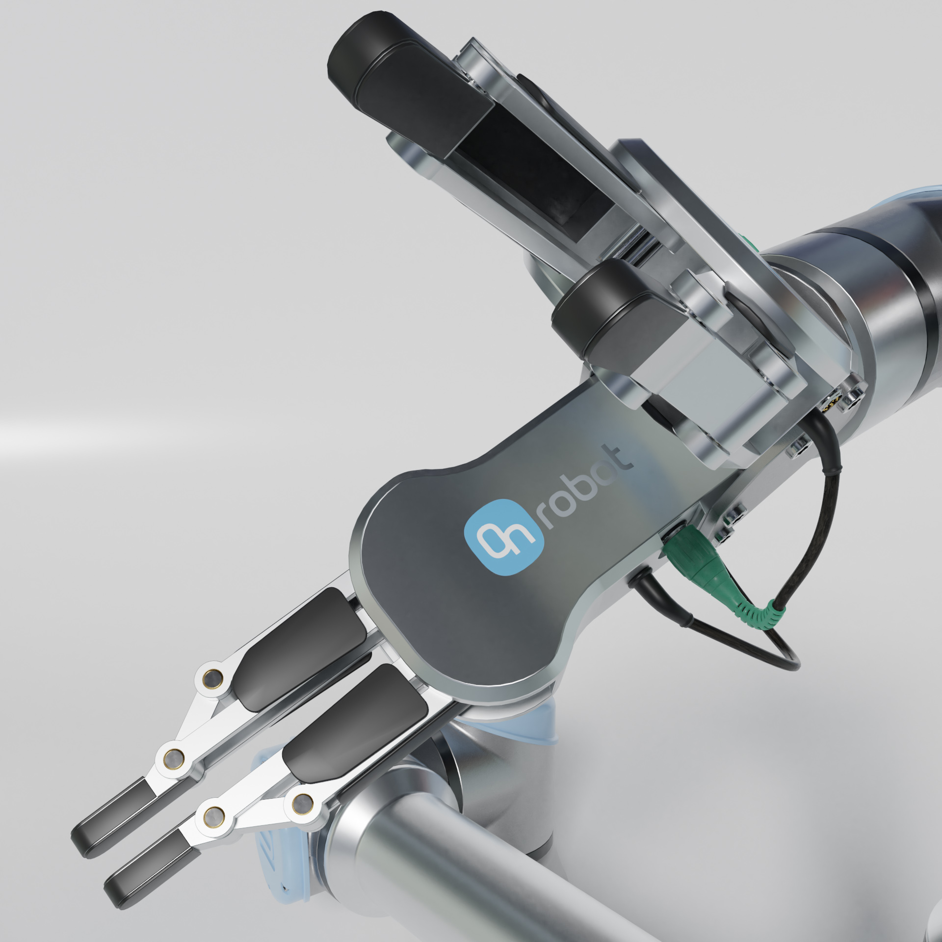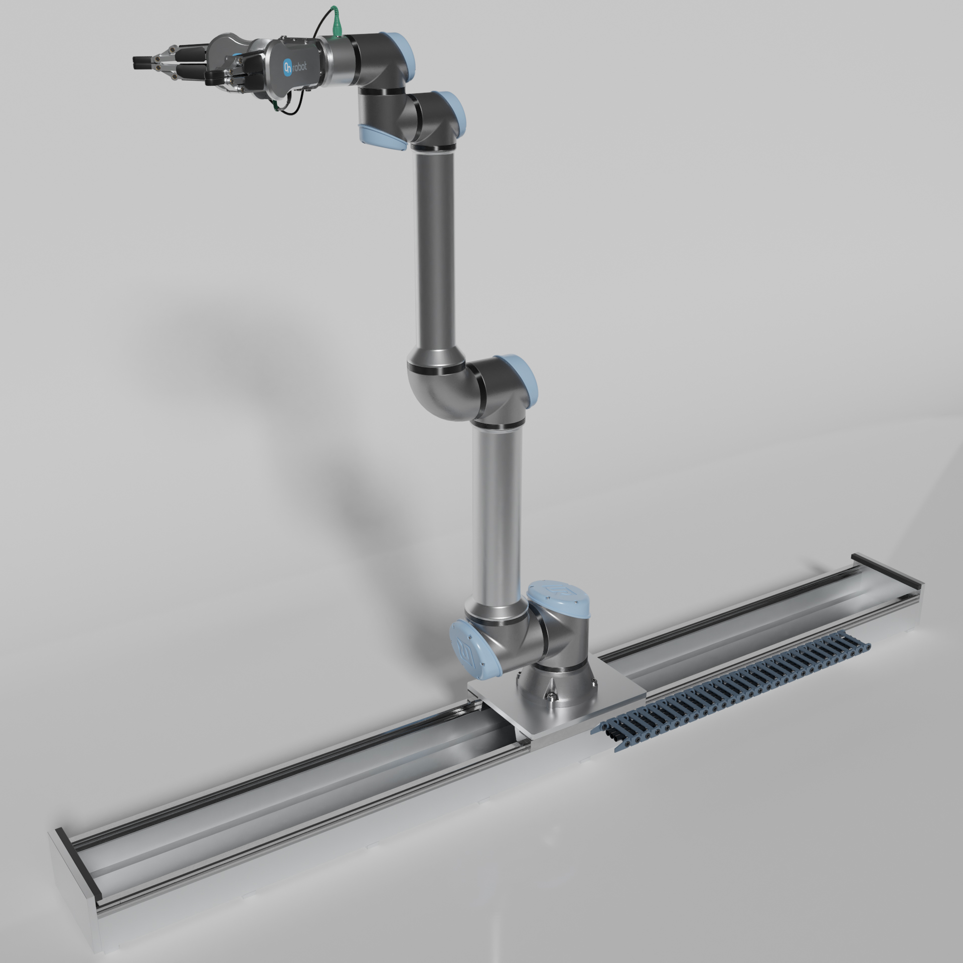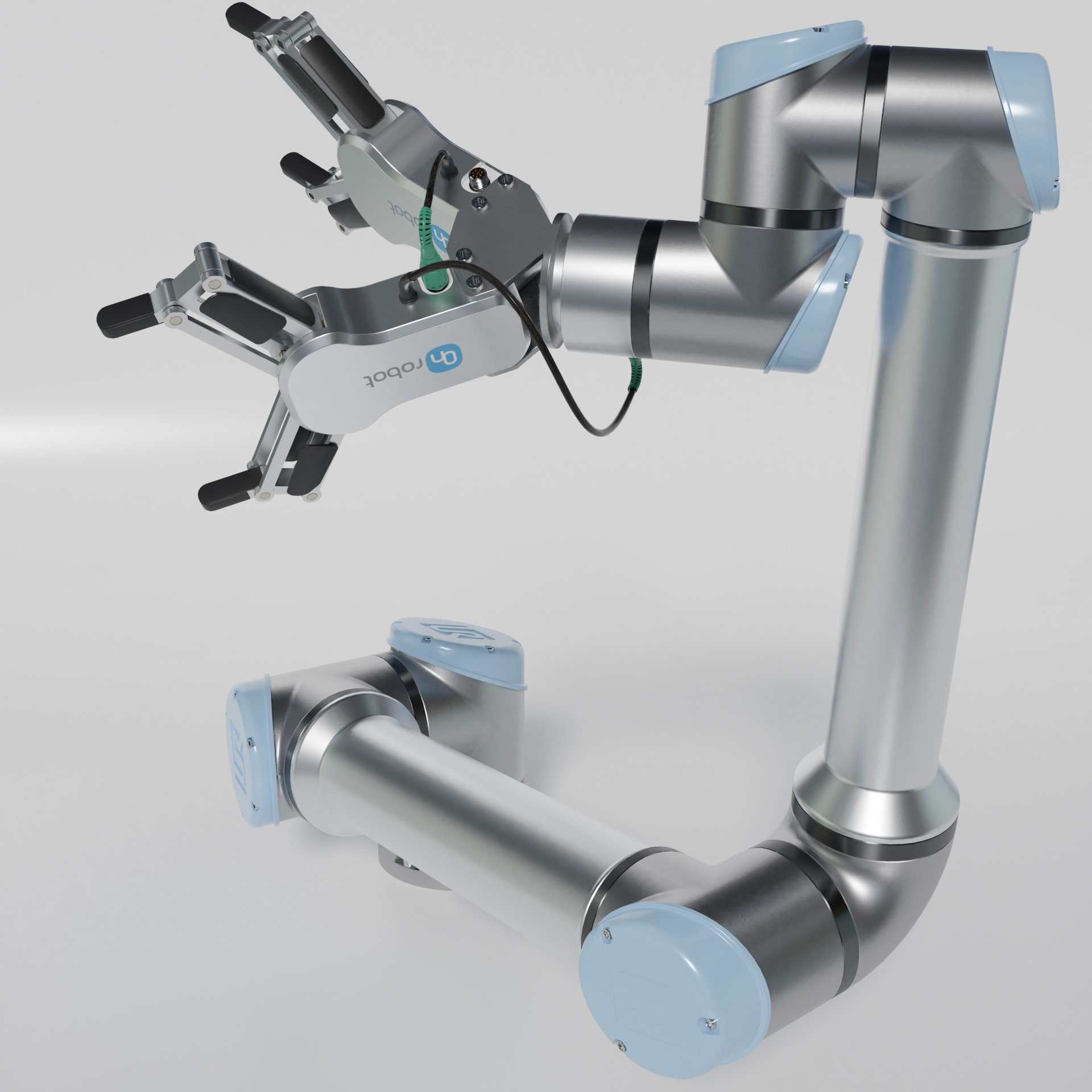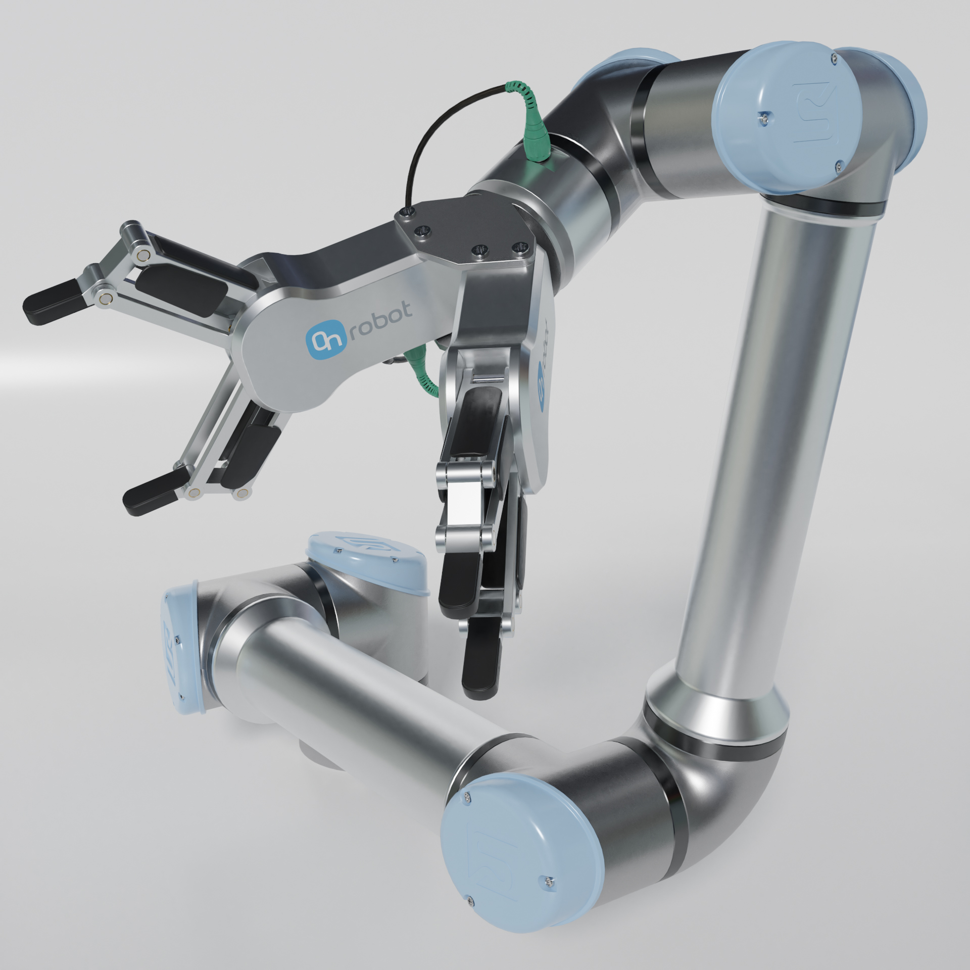 Industrieroboter Universal robots ur10e mit zwei On Robot RG2 zwei Fingergreifern.