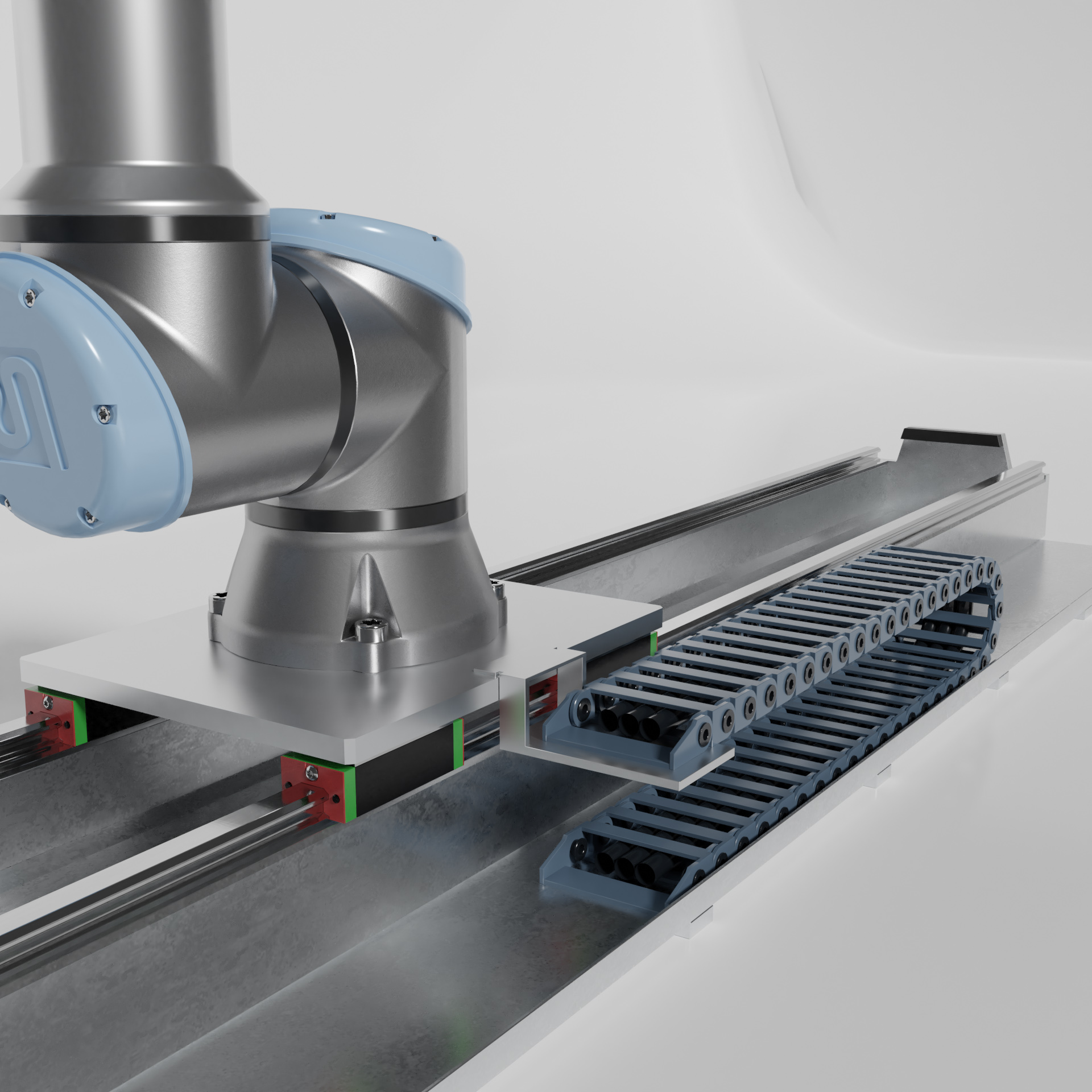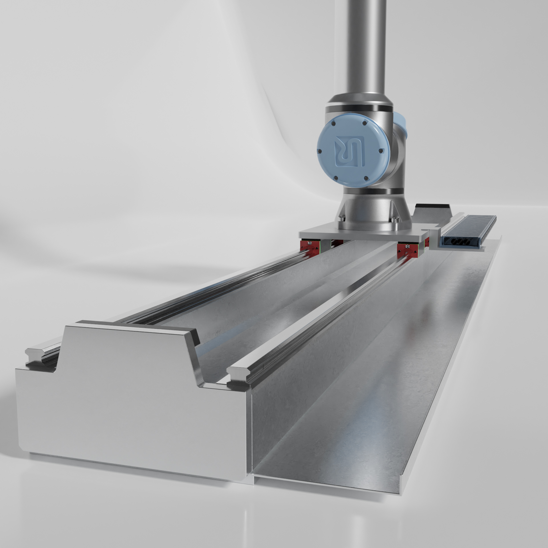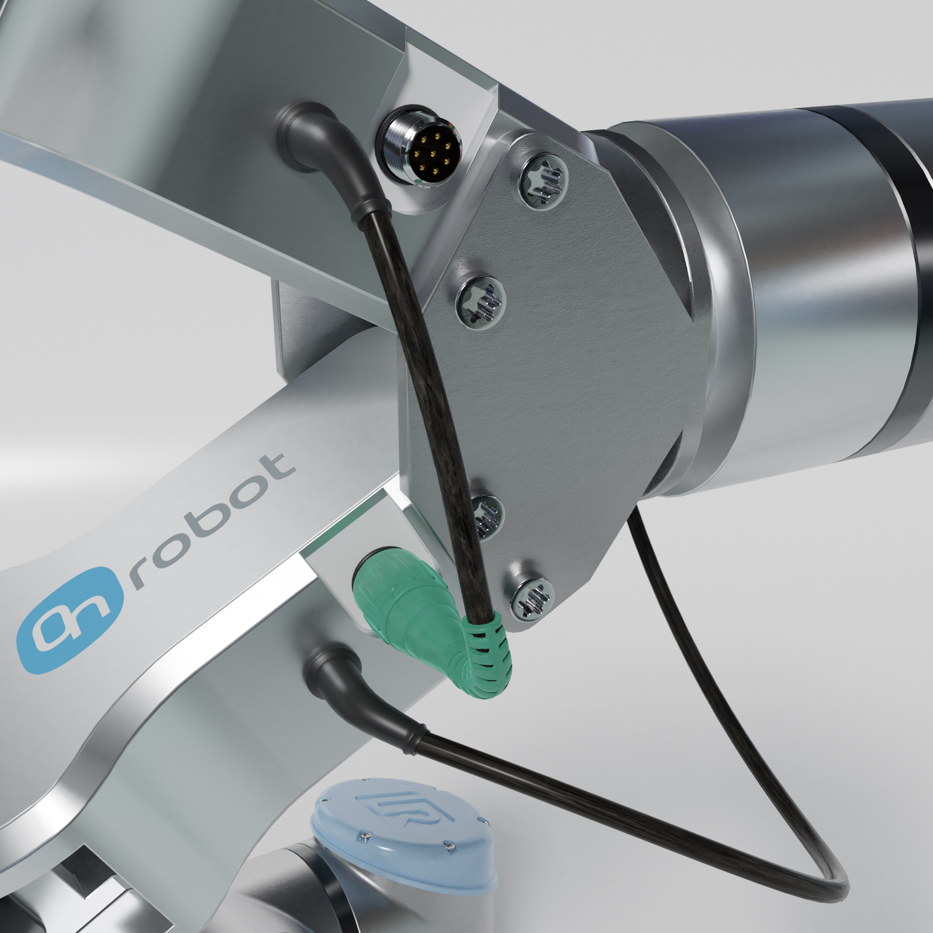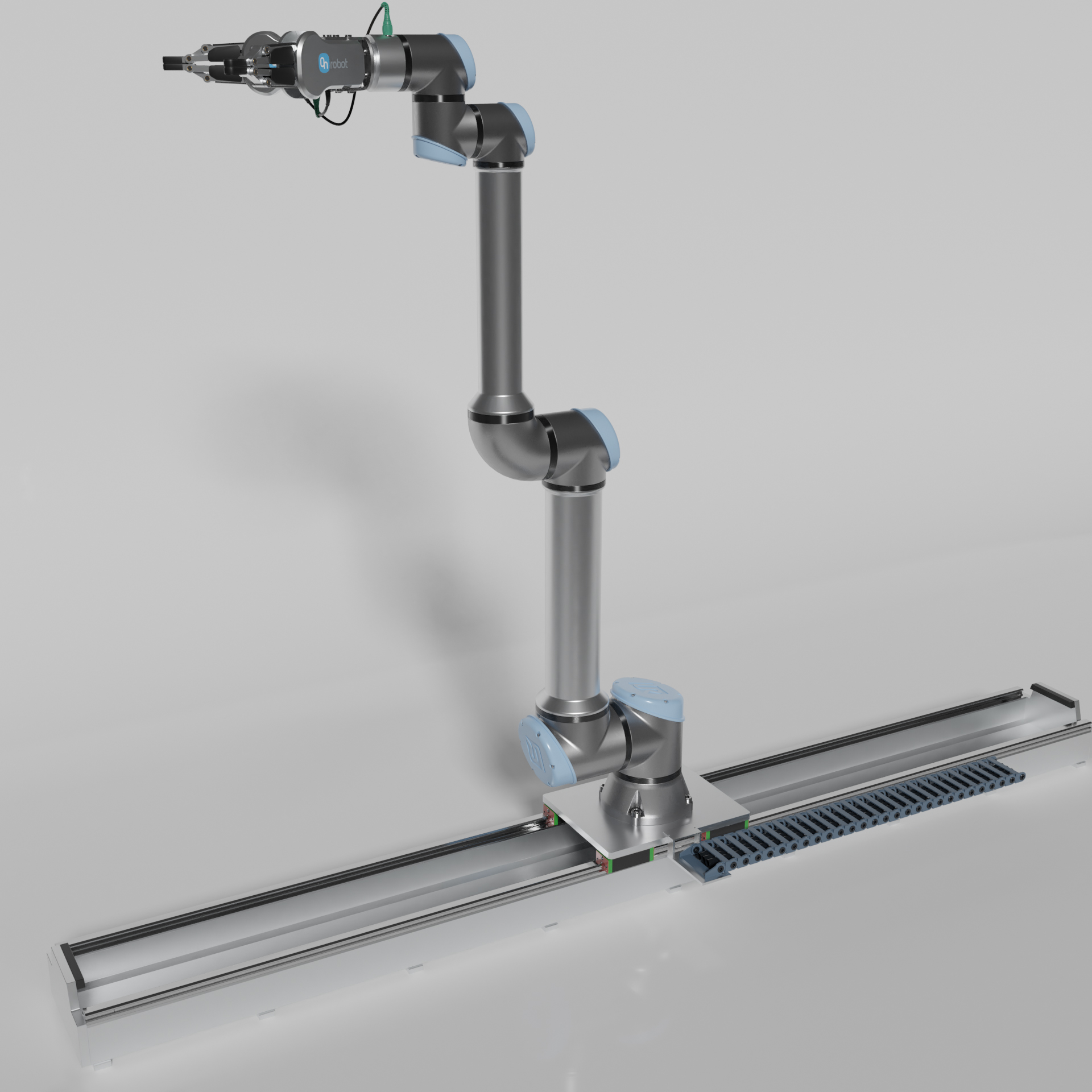 Industrieroboter Universal robots ur10e mit zwei On Robot RG2 zwei Fingergreifern.