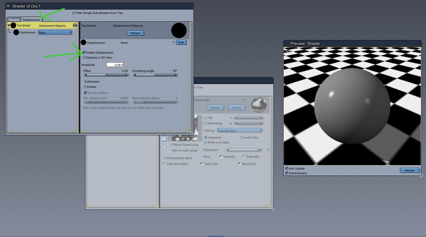 ich zur Zeit dabei das Displacepainting in Carrara etwas genauer zu untersuchen. Leider muss ich sagen ich raffe das alle überhaupt nicht.