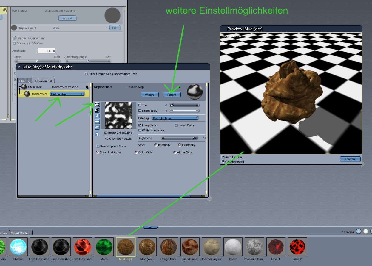 Ob das jetzt mit DAZ Content auch so einfach funzt musst Du testen. Ich würde die Bumb-Map benutzen wenn keine Height- bzw. Disp-Map zur Verfügung steht.