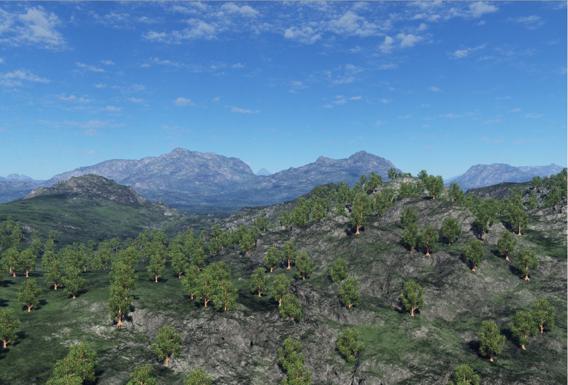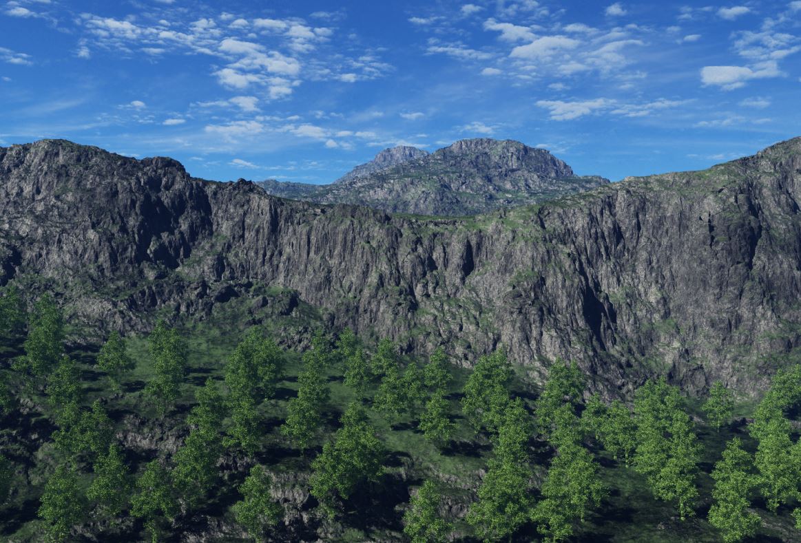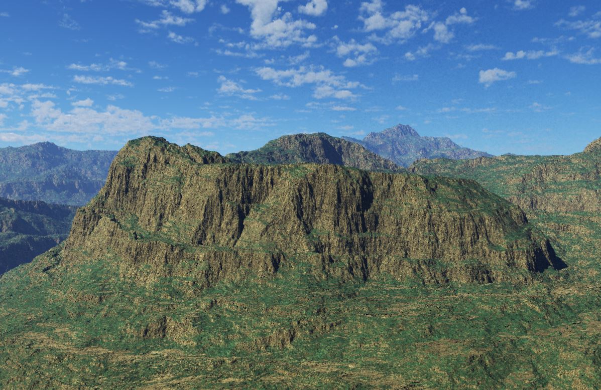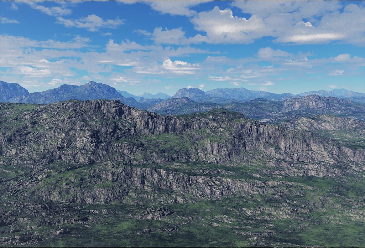 Das Bewaldete (Nr. 3) kommt recht gut. Terragen kann feine Felsstrukturen sehr gut darstellen.