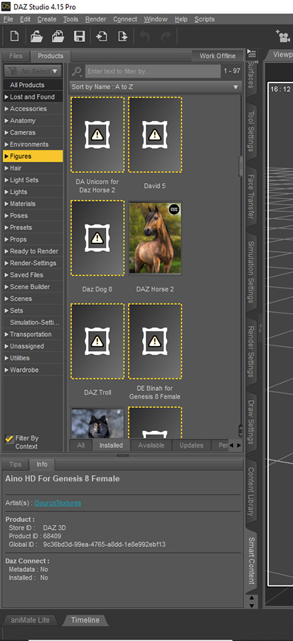 Seit dem wird Content der nicht von Daz ist denn ich aber über den DIM installiere mit Bildern im Smart Content angezeigt, im DIM selbst fehlt aber das Häkchen das er es im Smart Content eingetragen hat.