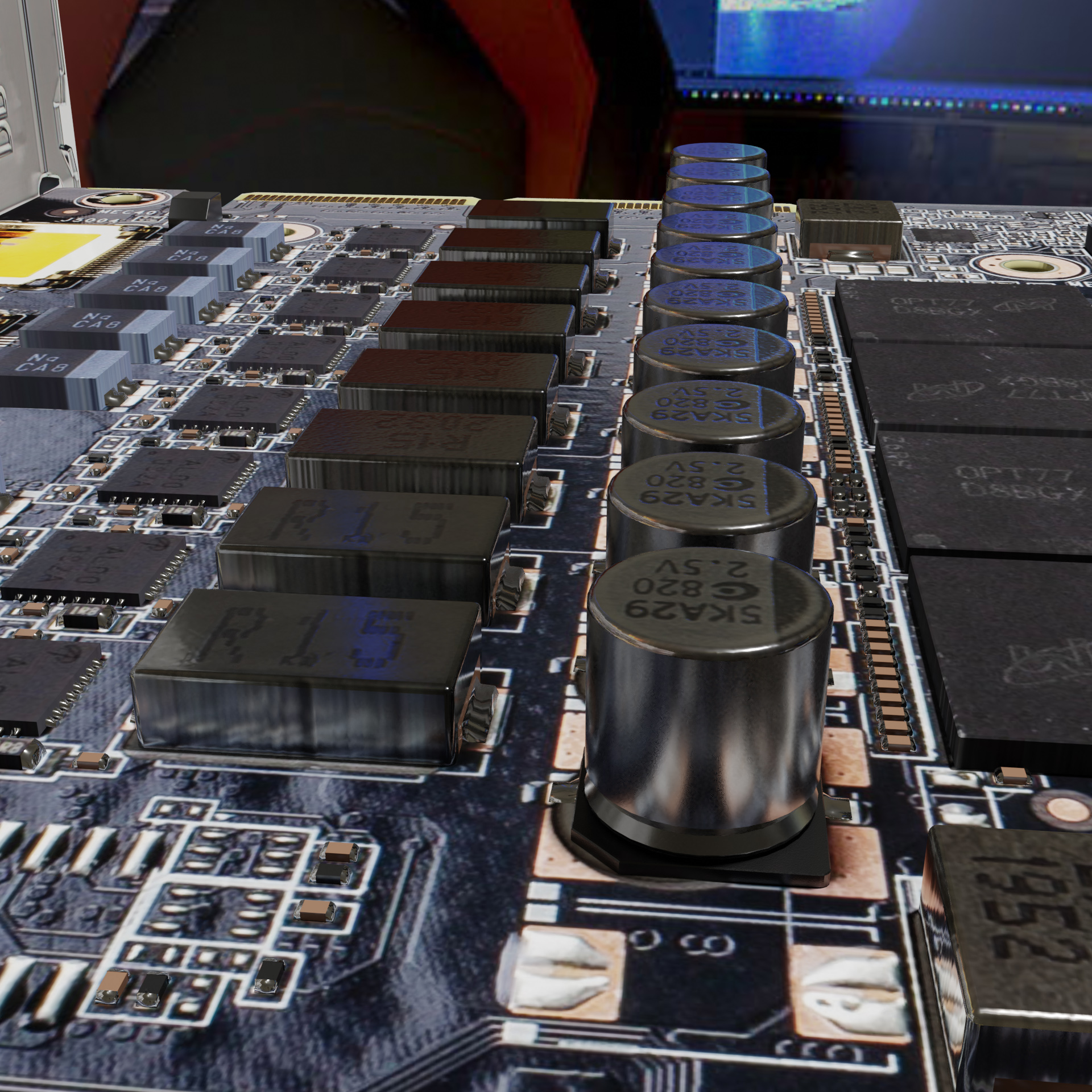 Das RTX 3090 Grafikkarten Mainboard ist voll bestückt mit über 1650 Einzel Bausteinen. gut geeignet für Untersuchungen, nah aufnahmen und zum Animieren. die Karte ist ohne Kühl Lösung.