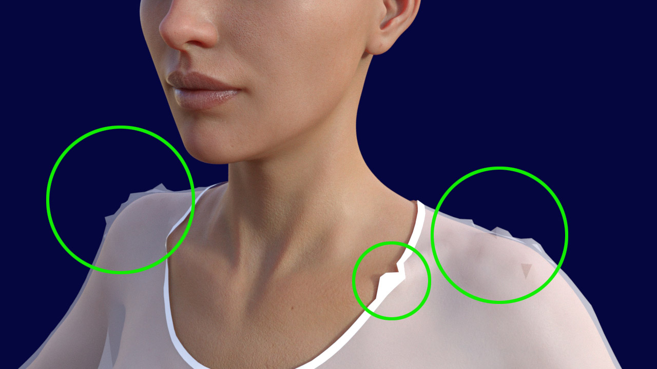 Jedenfalls scheint mir das Shirt etwas low-poly zu sein. Eine Wireframe-Ansicht wäre hier hilfreich.