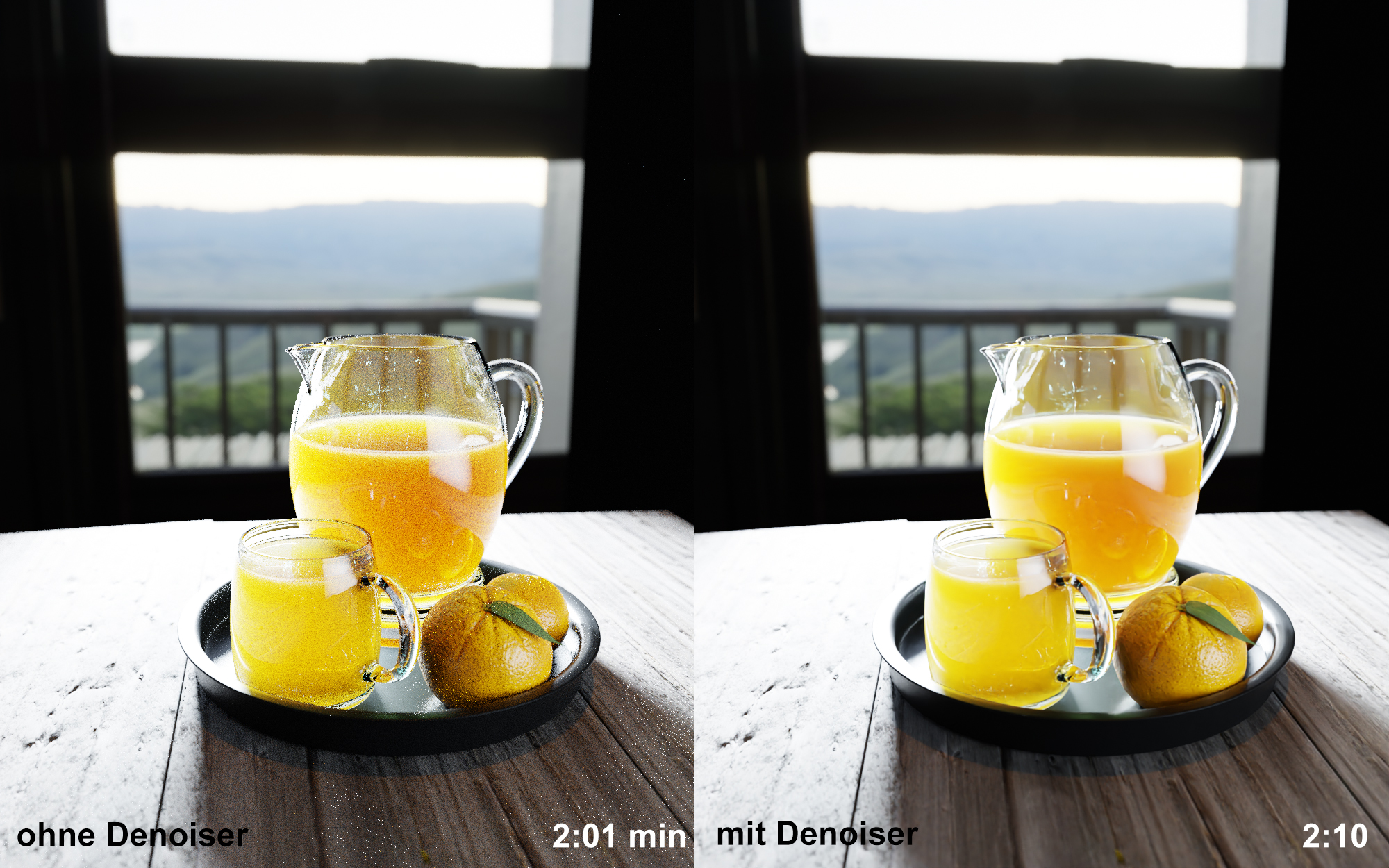 Selbst hatte ich den Luxrender vor ein paar Jahren mal ausprobiert und war von der Geschwindigkeit nicht überzeugt (damals noch auf Apple). Nun ist der LuxCoreRender mit allen modernen Features ausgestattet, wie es scheint. Auf einem einigermassen neuen Rechner mit drei GPU's (GTX1080Ti) kommt Freude auf. Habe einige Testszenen von der offiziellen Seite runter geladen und ausschliesslich auf CUDA/GPU rechnen lassen, mit und ohne den Denoiser, jeweils für 500 samples. Die Geschwindigkeit ist unter diesen Bedingungen überraschend gut, zumal für eine physikalisch korrekte Render-Engine (Redshift wäre noch schneller, aber das wäre dann eben eine "biased engine" und alles andere als gratis).
