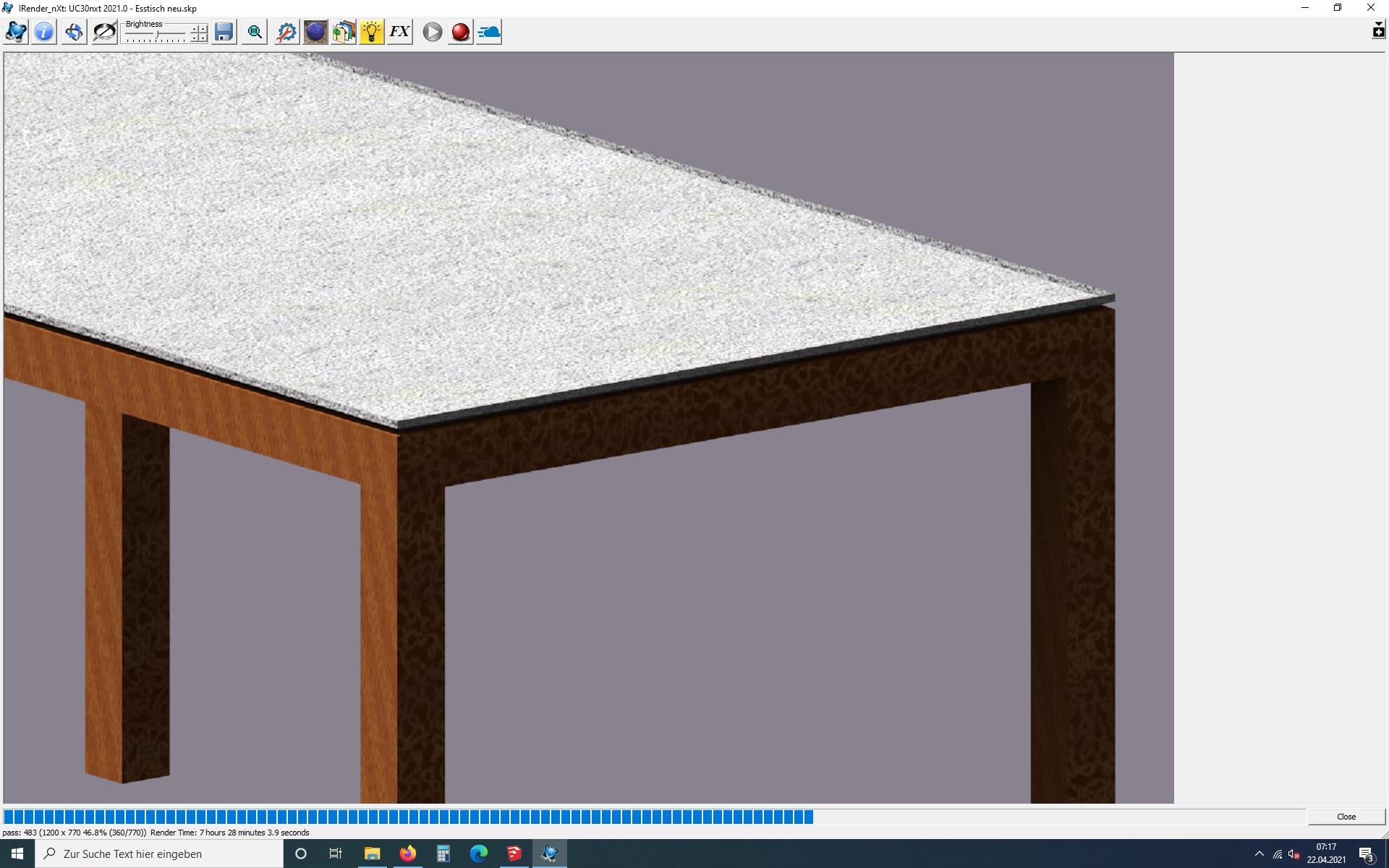 Anschließend habe ich dem Tisch eine in Sketchup vorhandene Textur zugewiesen (Holz und Stein) und ihn mit dem angedockten Indigo Renderer gerendet.