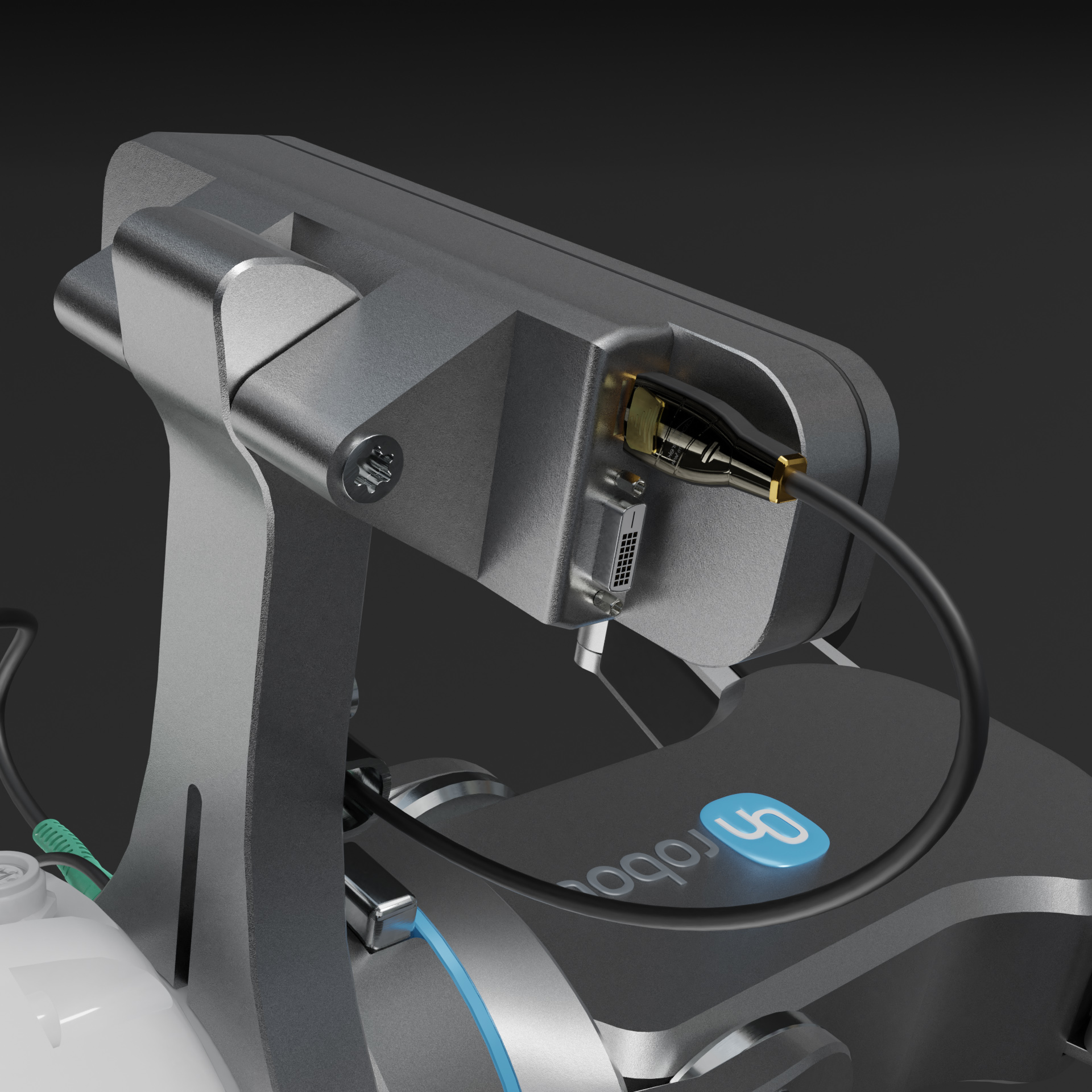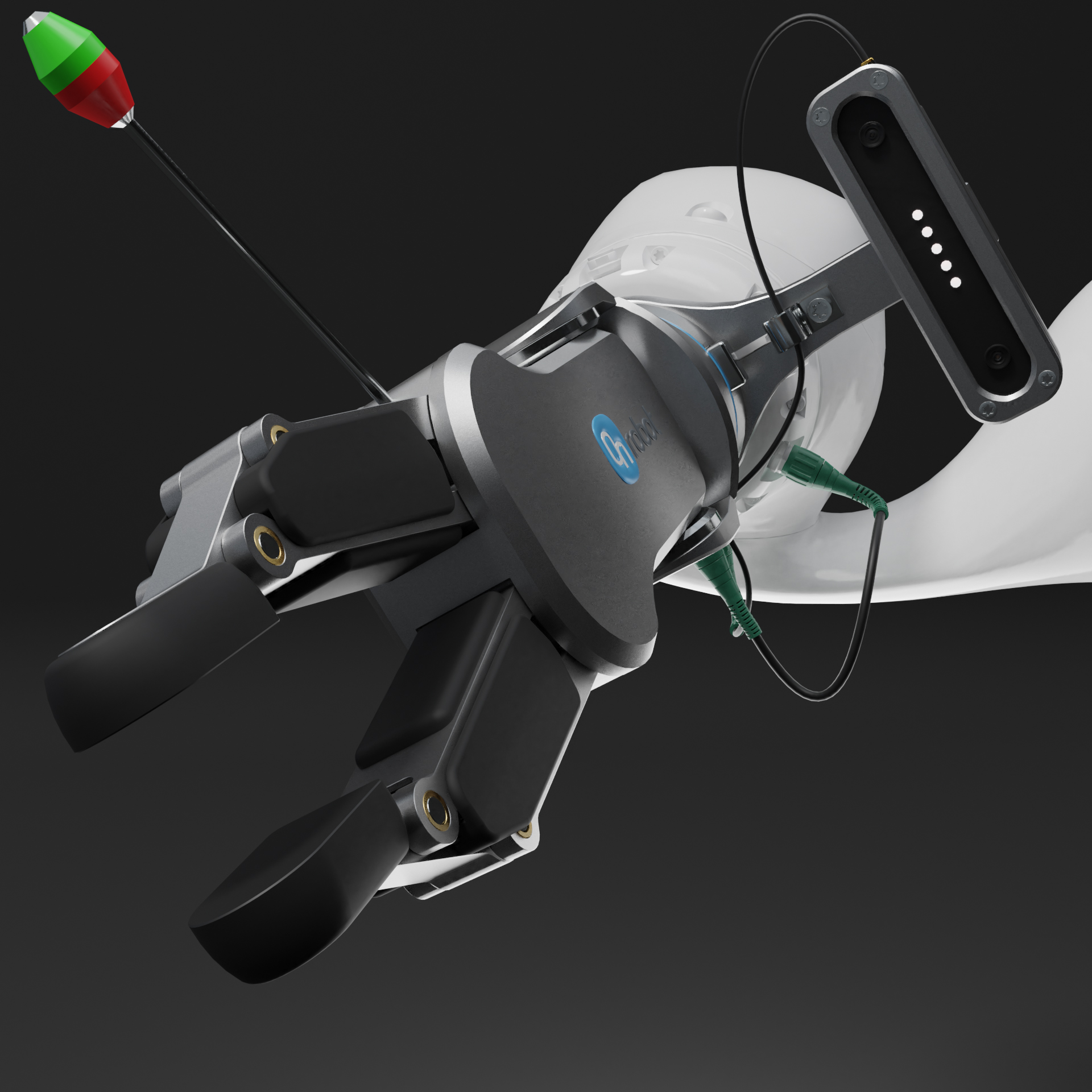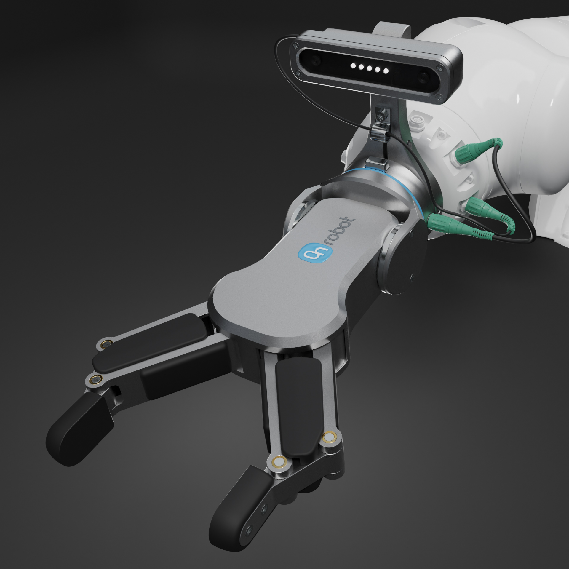 ein on Robot RG 6 für 6 bis 10 Kg, ein Roboter Greifer der neuesten Generation mit on robot Stereo Augen. hiermit kannst du dein Roboter Model ausstatten. der Greifer ist voll beweglich , er hat einen gut sichtbaren Hebel der nicht mit gerendert wird. Kabel sind dabei du kannst den Greifer gleich montieren. du kannst den Greifer mit dem Blender addon Blenderkit oder von meiner Cloud downloaden. ich wünsche viel spaß mit dem Model.