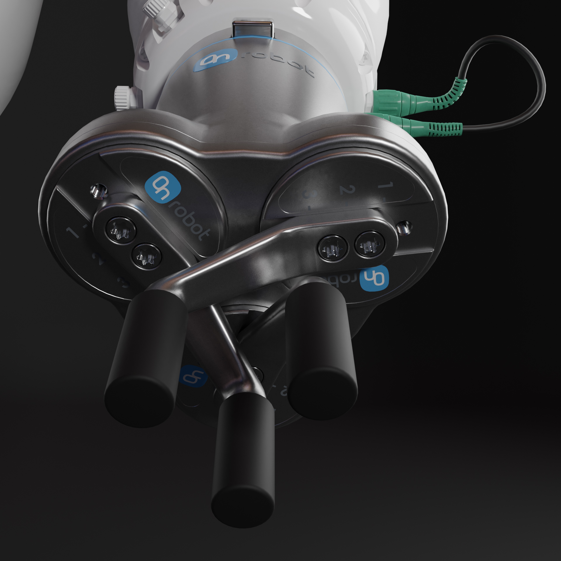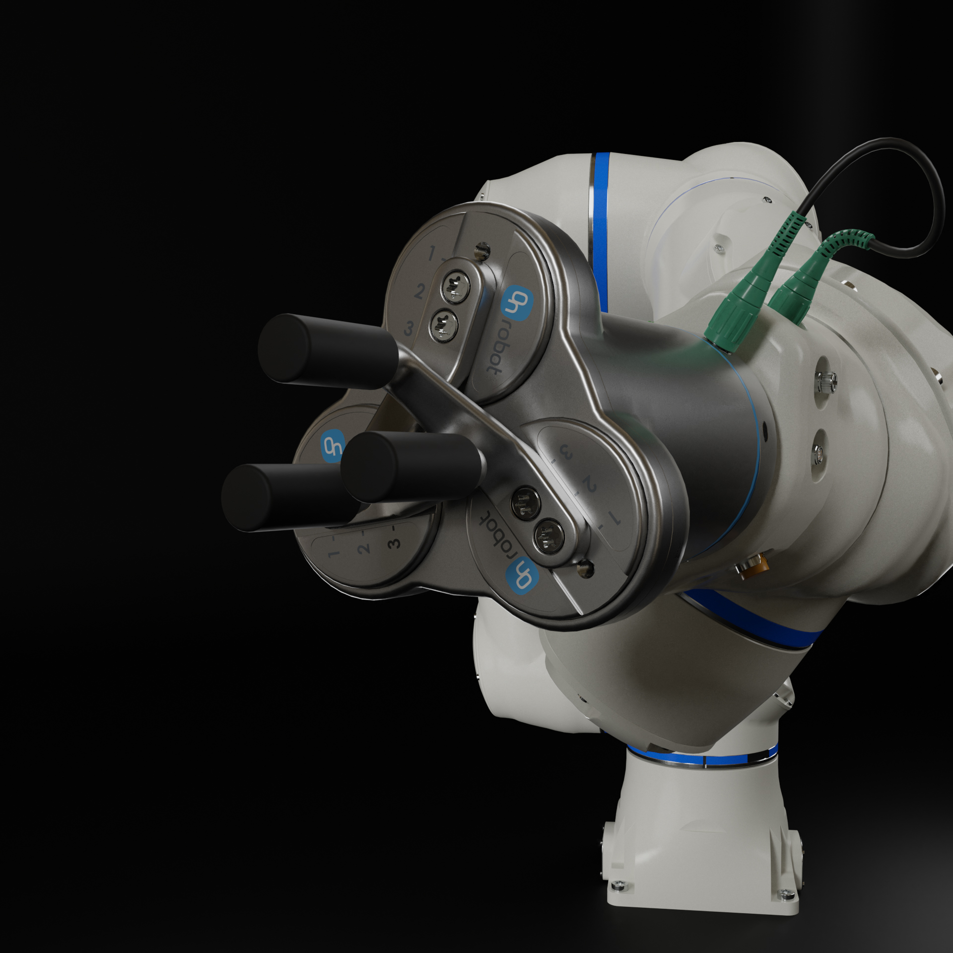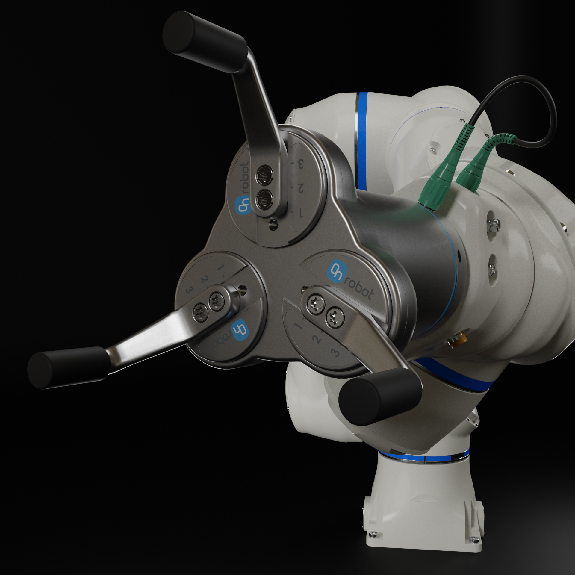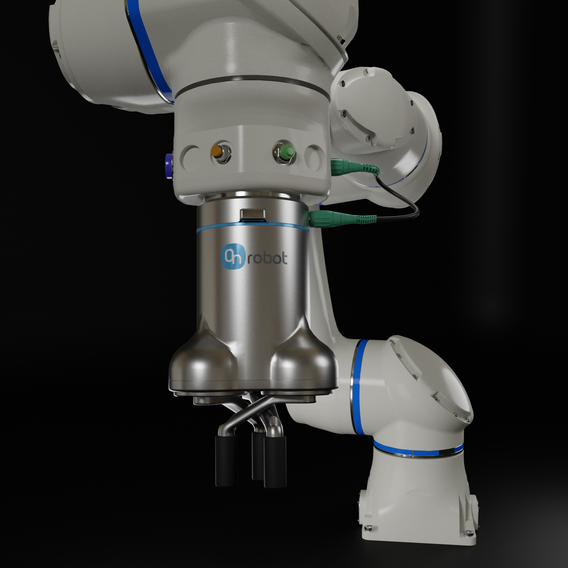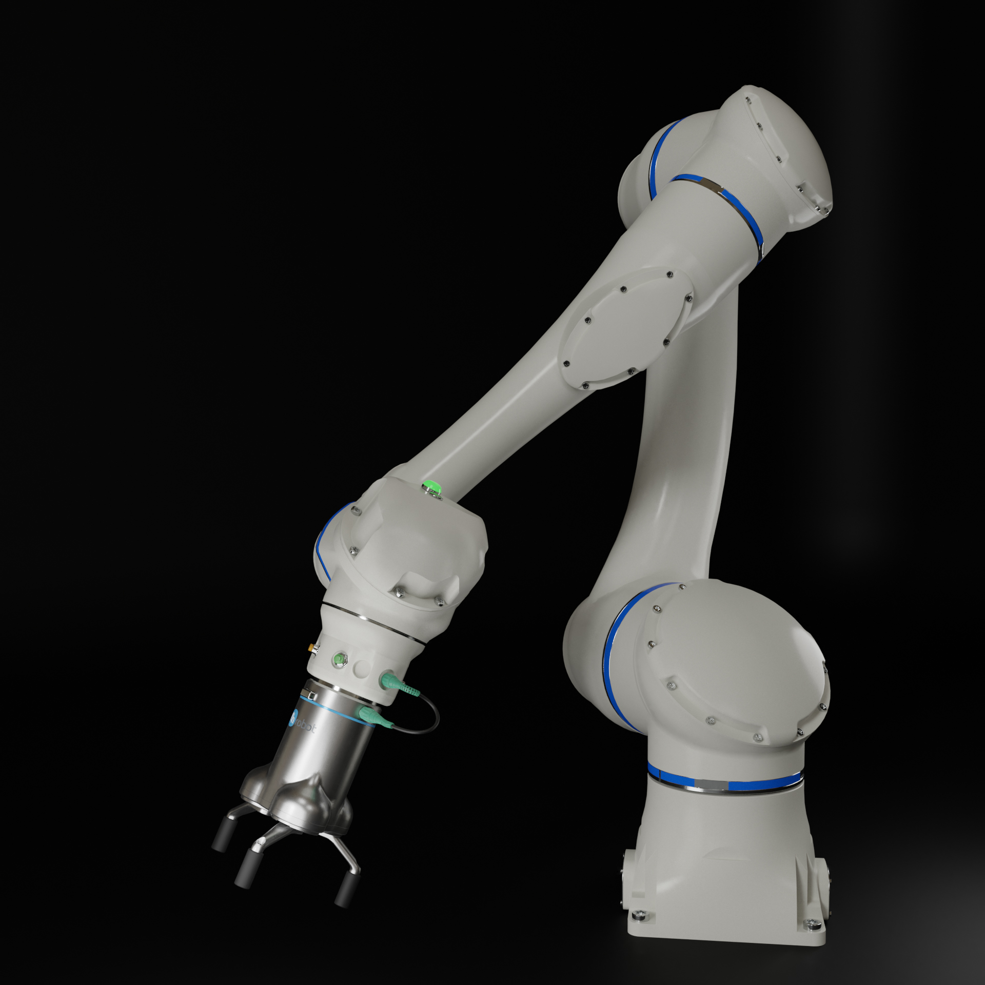 ihr seht ein Yaskawa MOTOMAN HC20DT Kollaborativen Industrie Roboter mit einer on robot 3FG15 Zylinder greif Vorrichtung. der Roboter kann 20 Kg tragen und der Greifer 15 kg.