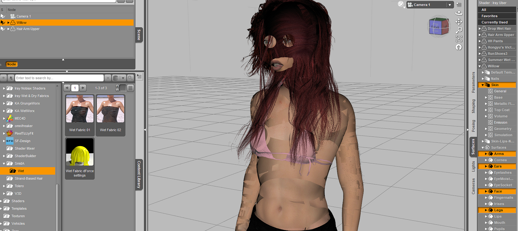 Ich habe den wet shader von SmidA statt auf die Kleider auf die Haut angewandt. Da kam dann so etwas ähnliches dabei raus....