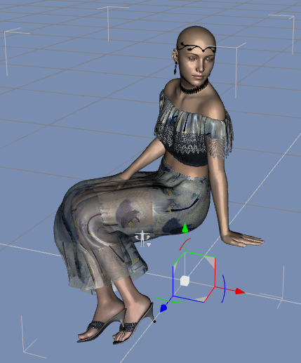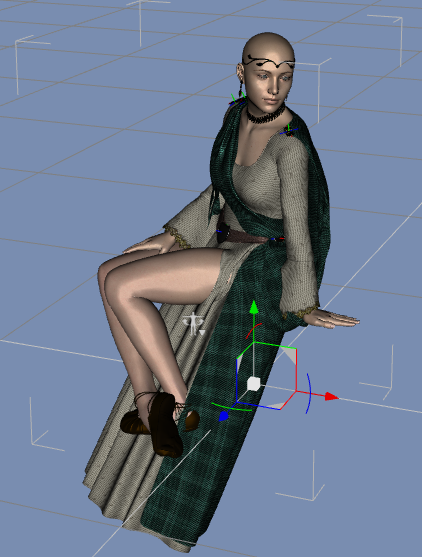 • Wenn ich das richtig sehe, dann sitzt die in der Luft. Du musst einen Stuhl oder einfach ein Primitive zum Sitzen hinstellen. Sonst wird das Gewand immer durchhängen. Und zwei Fragen hab ich noch. Ist die Kleidung auch mit deiner Genesis geparented und ist die Genesis in der Simulation sichtbar (Parameters Tab - Display -> Visible in