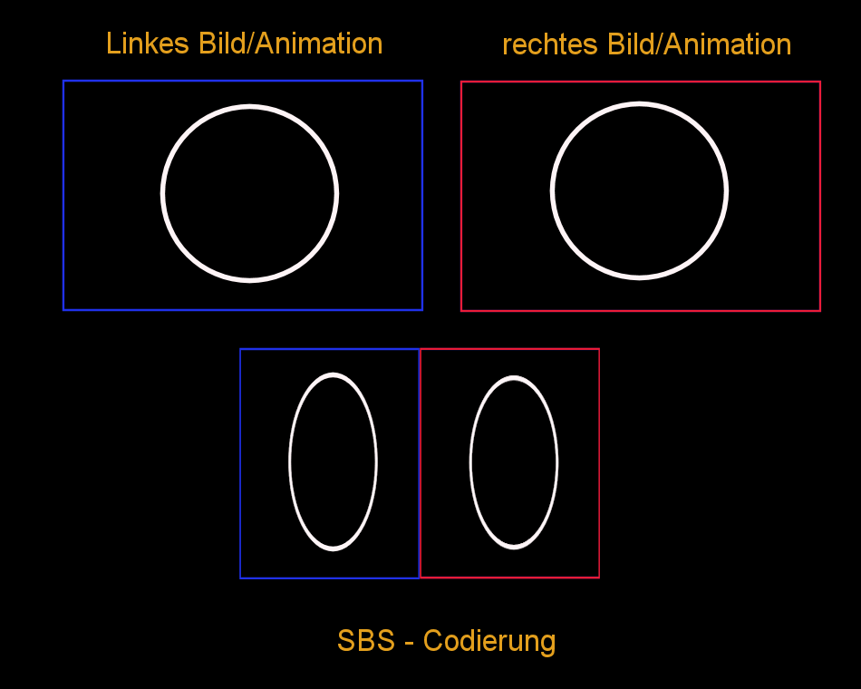 Die 3D Hardware teilt das Bild beim encodieren in der Mitte und zieht die linke und rechte Seite wieder auf das volle Anzeigeformat auf und gibt die Bilder links/rechts im Wechsel mit der Brillensync aus.