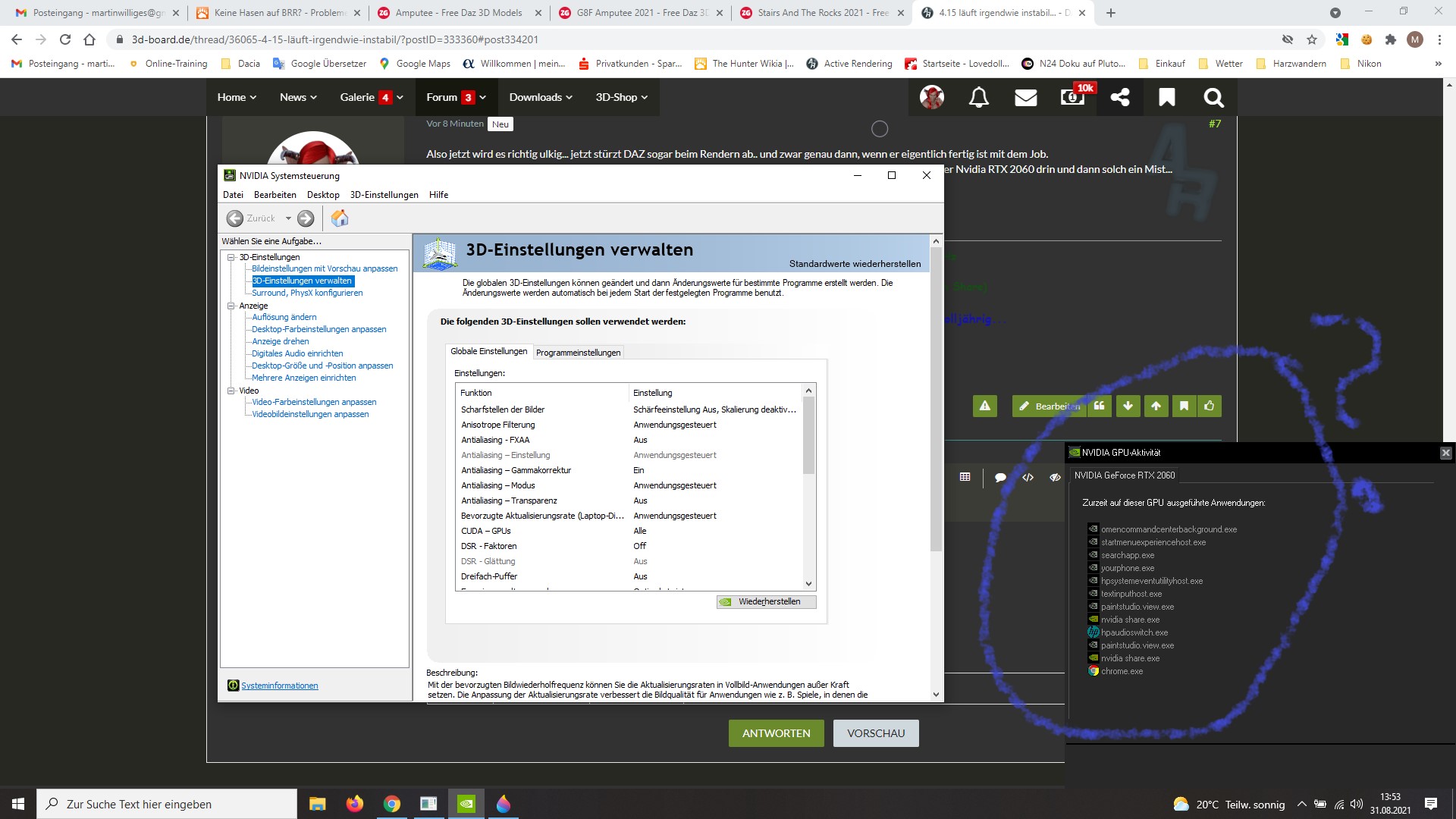 Bevor Fragen kommen--> neueste (Studio-)Treiber für die 1650GTX sind drauf, Winblöd ist auf dem neuesten Stand Und der 8-Kerner AMD mit seinen 32GB Arbeitsspeicher hat auch genug Power...