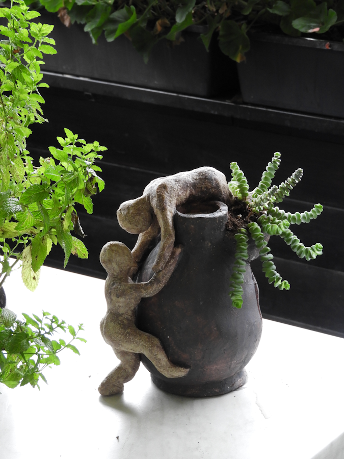 Die drei letzten Werke sind das Wintersonnengesicht, die distinguierte Katze (nach einer Idee von Mitchell Grafton,), und die Helpvase, mit einem kleinen succulent bepflanzt ![]()