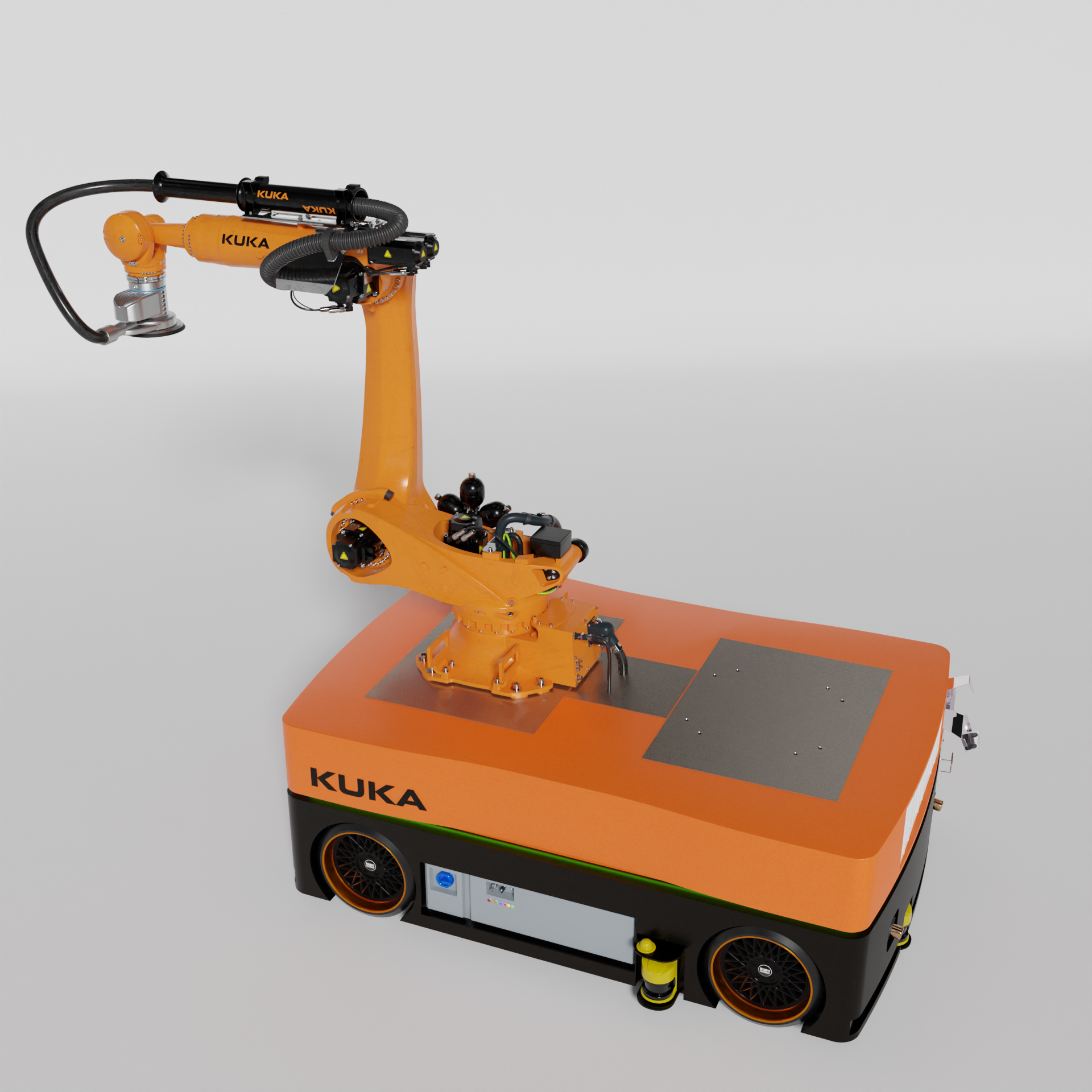 Industrie Roboter KUKA KR210 KMR Quantec für Schleif und Polier Arbeiten an Großen Objekten.
