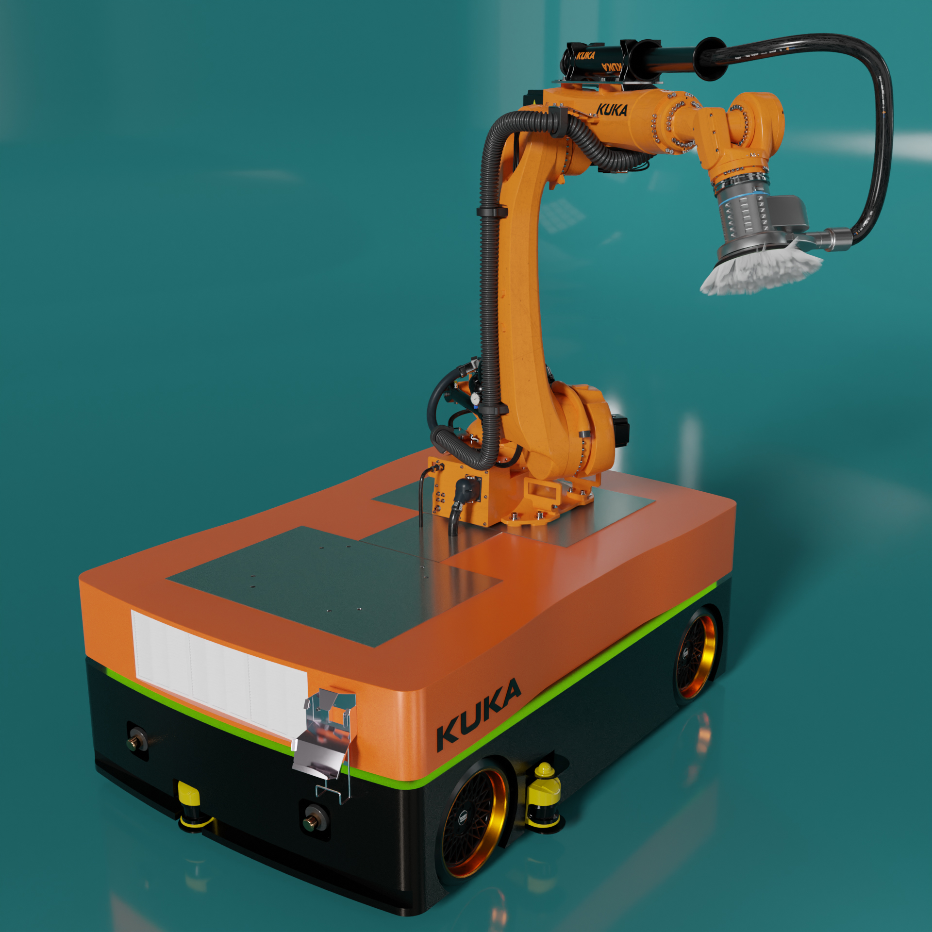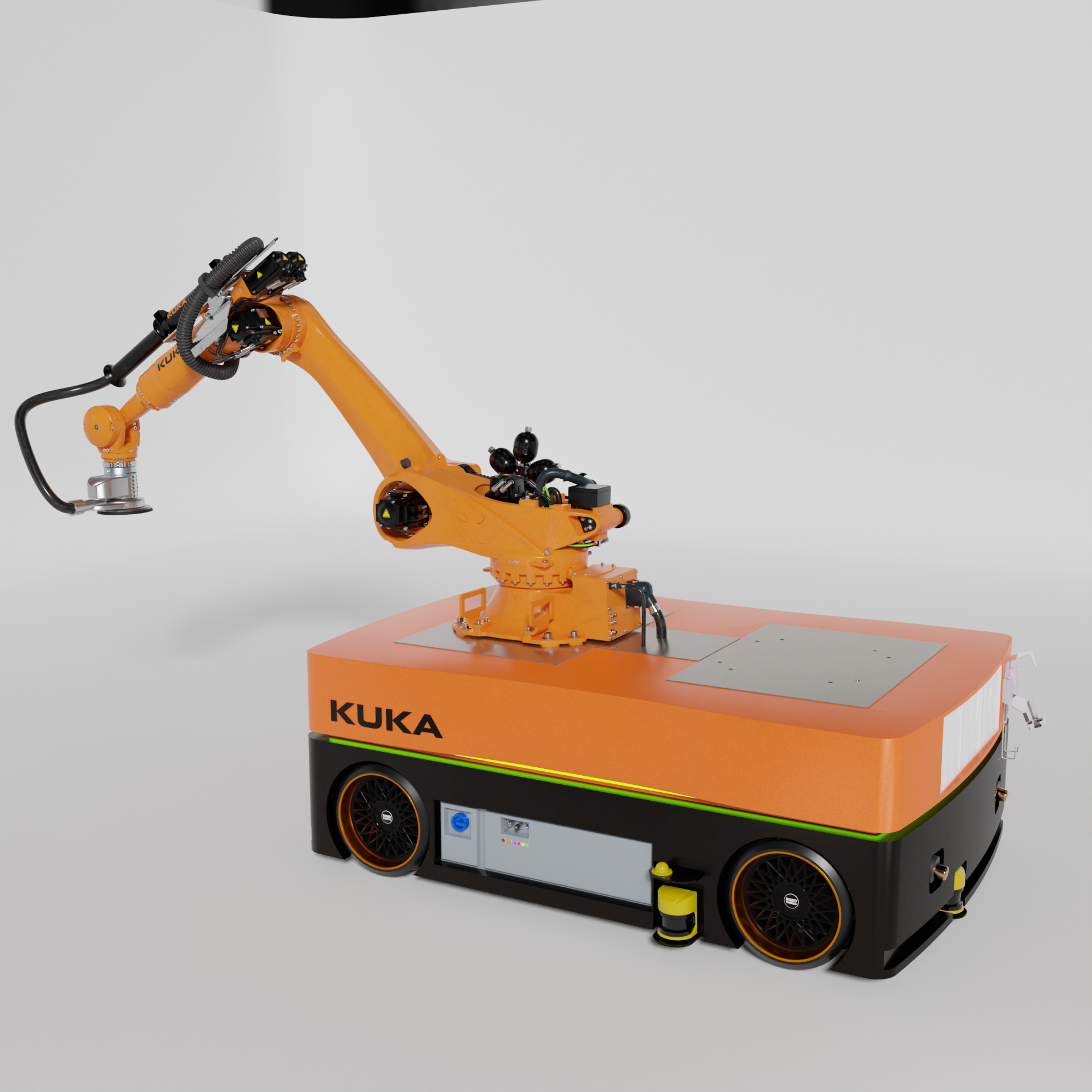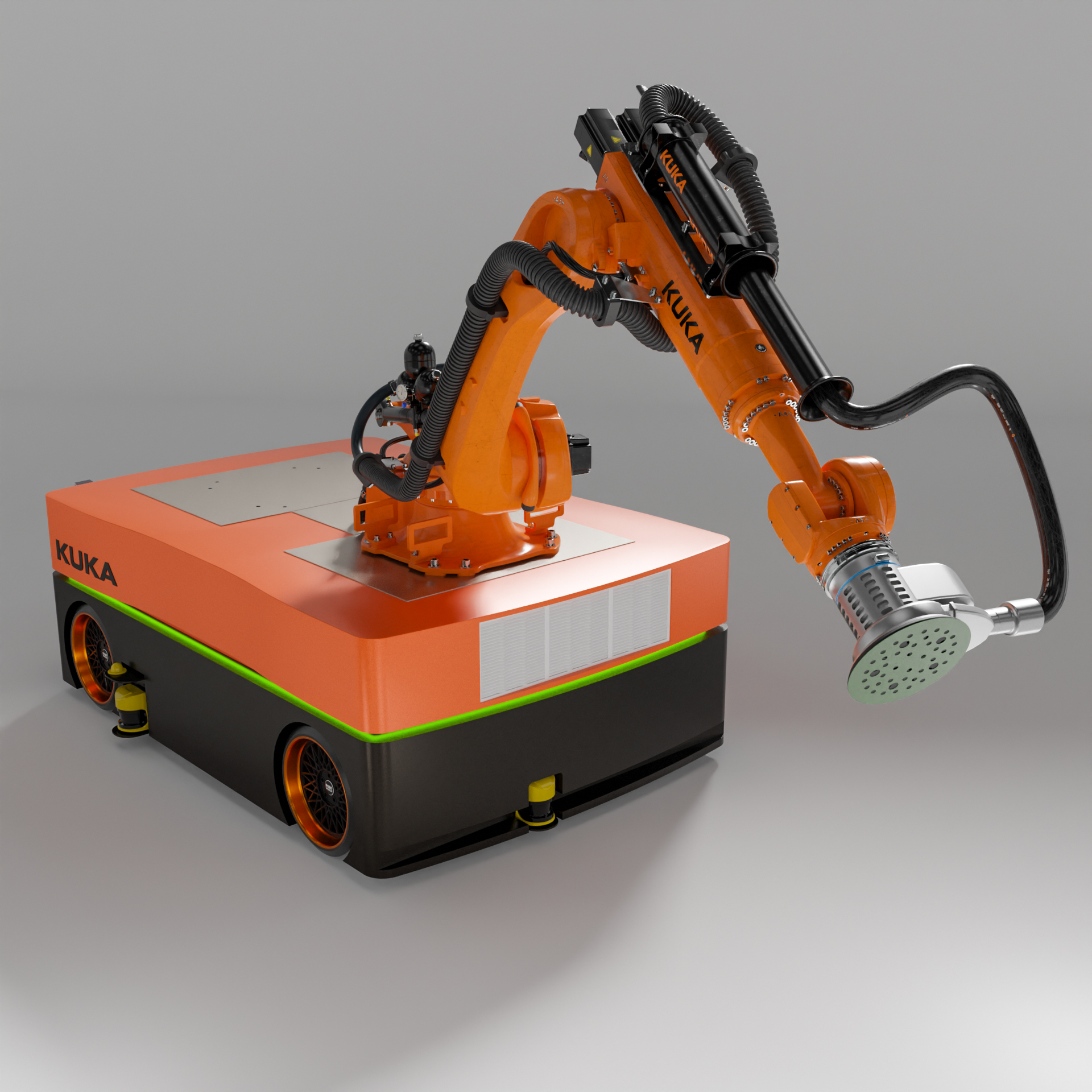 Industrie Roboter KUKA KR210 KMR Quantec für Schleif und Polier Arbeiten an Großen Objekten.