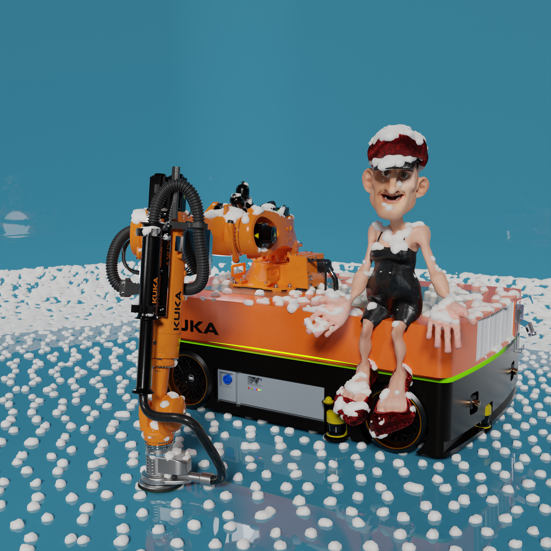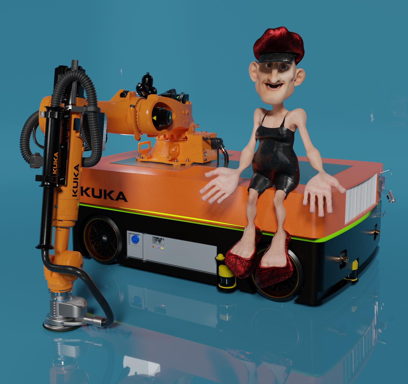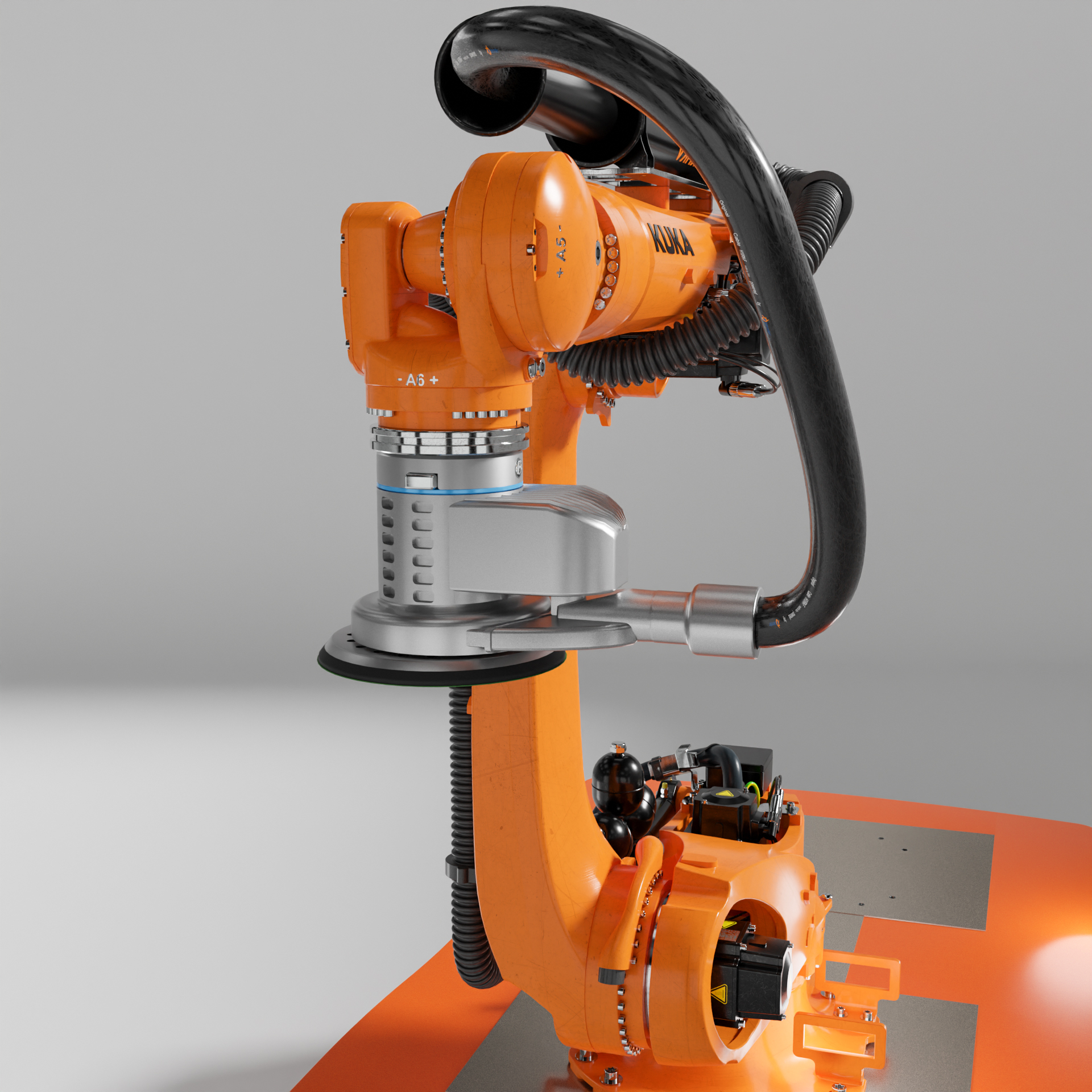 Industrie Roboter KUKA KR210 KMR Quantec für Schleif und Polier Arbeiten an Großen Objekten.