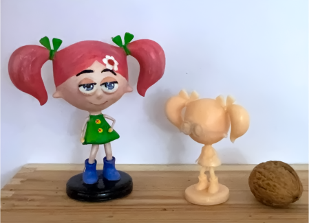 Was so genial ist, das sieht man leider nicht auf den Foto, aber die Ärmchen und die Brille von der kleinen sind unter 1mm gedruckt und überhaupt die Details die damit gedruckt werden ohne das man irgendwelche Streifen sieht sind erstaunlich. Man muss das echt sehen in videos oder Bilder kommt das garnicht so rüber. Jedenfalls sehr faszinierend .