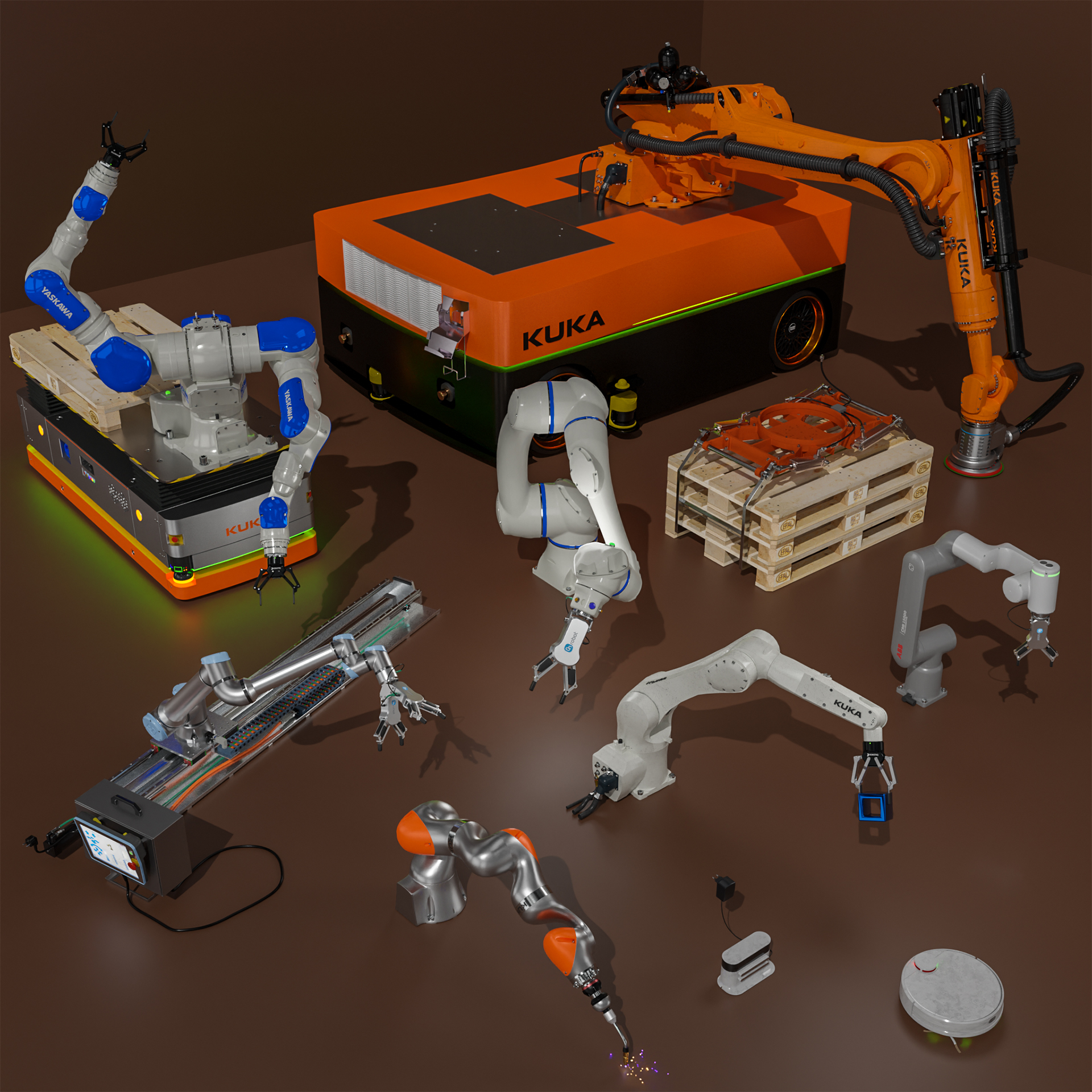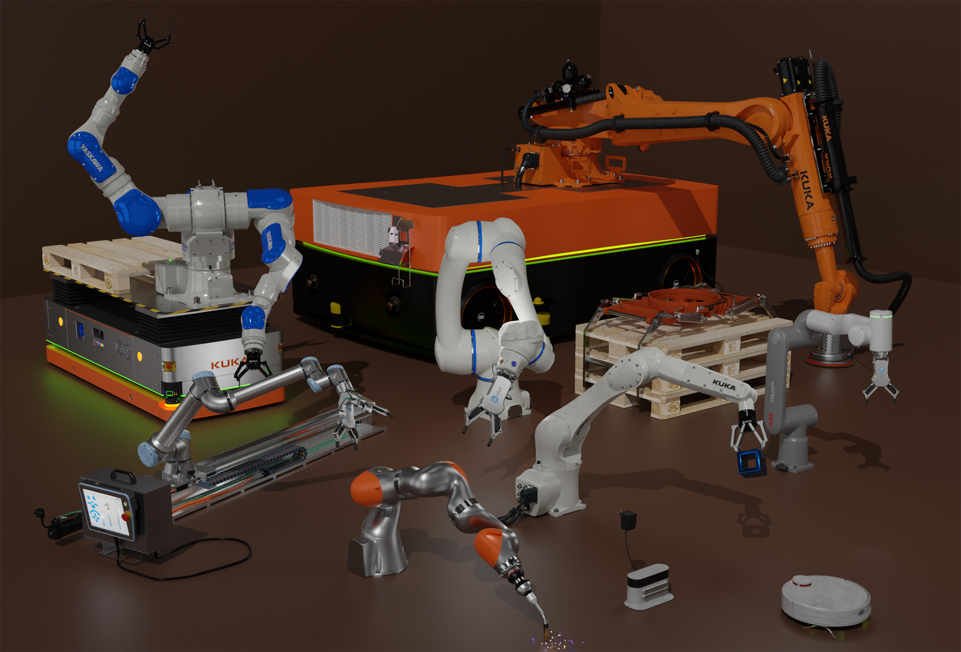 Verschiedene Roboter Modelle im Größenvergleich.
