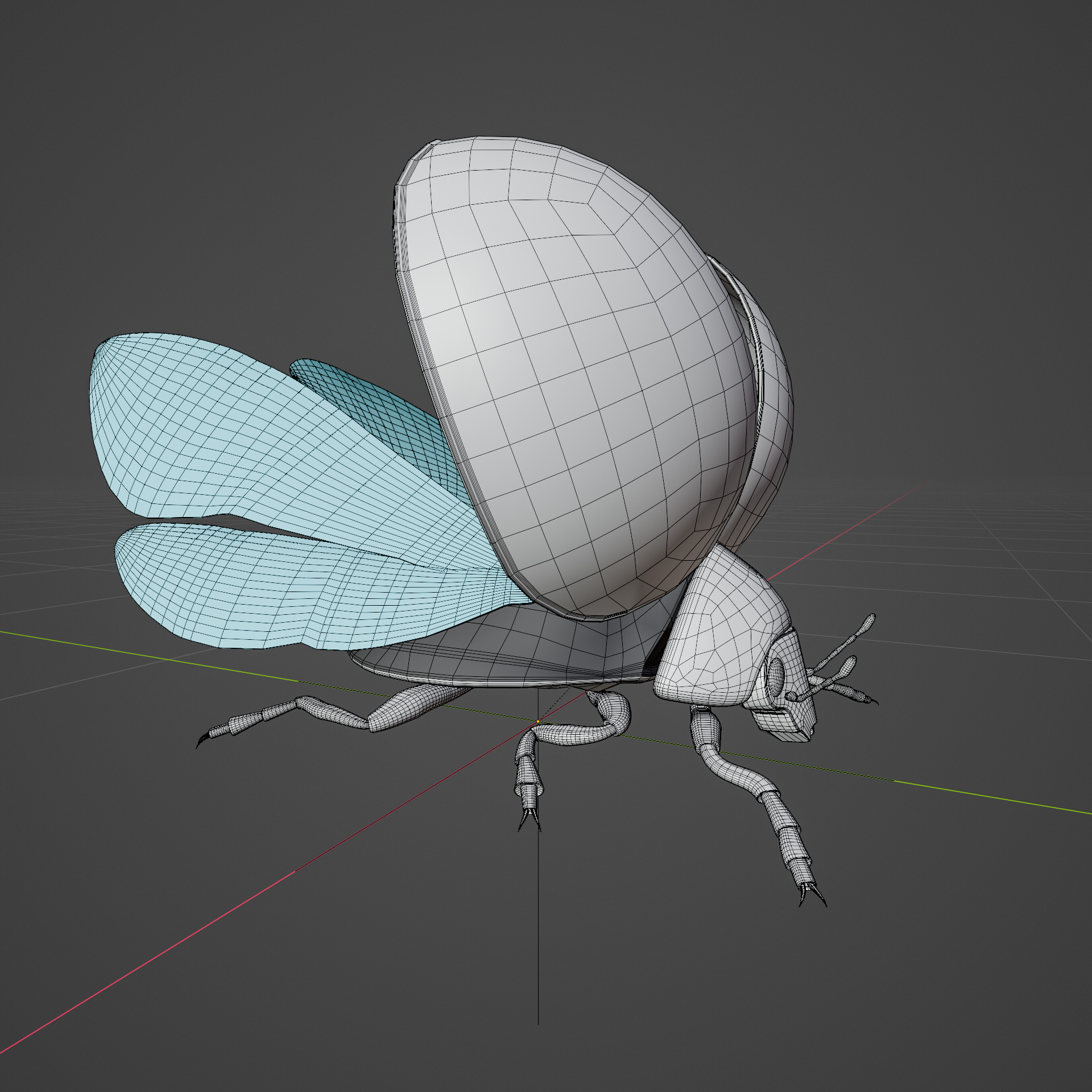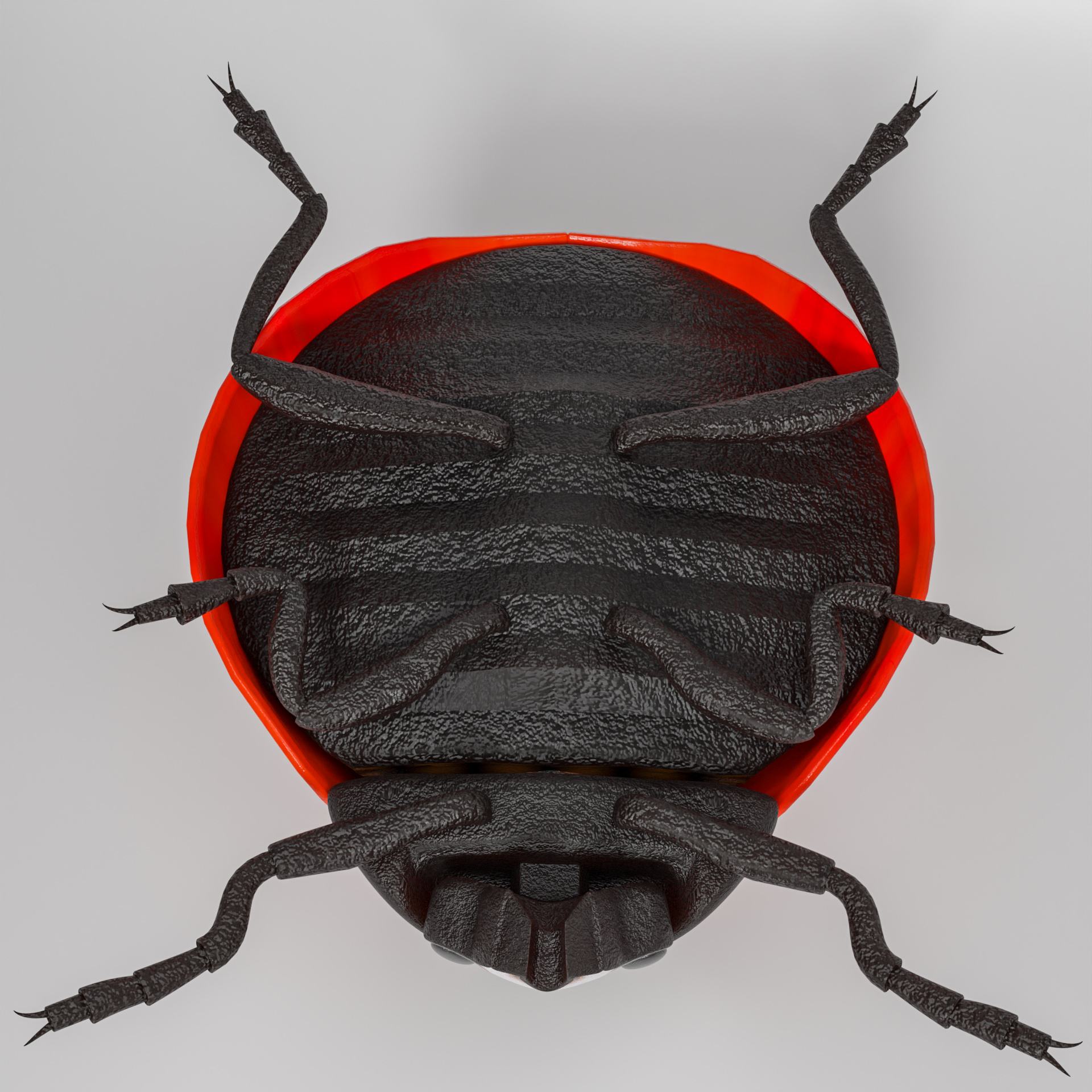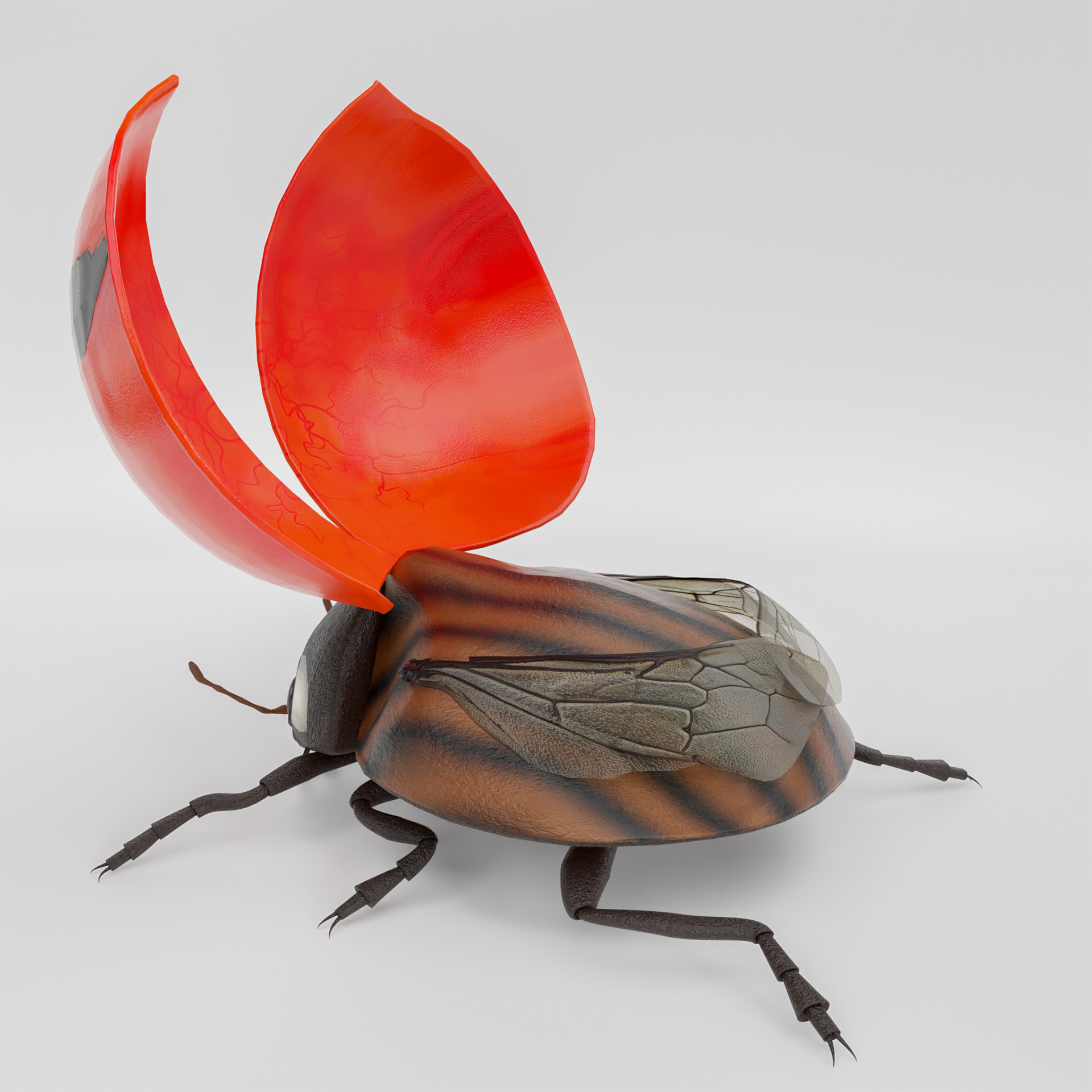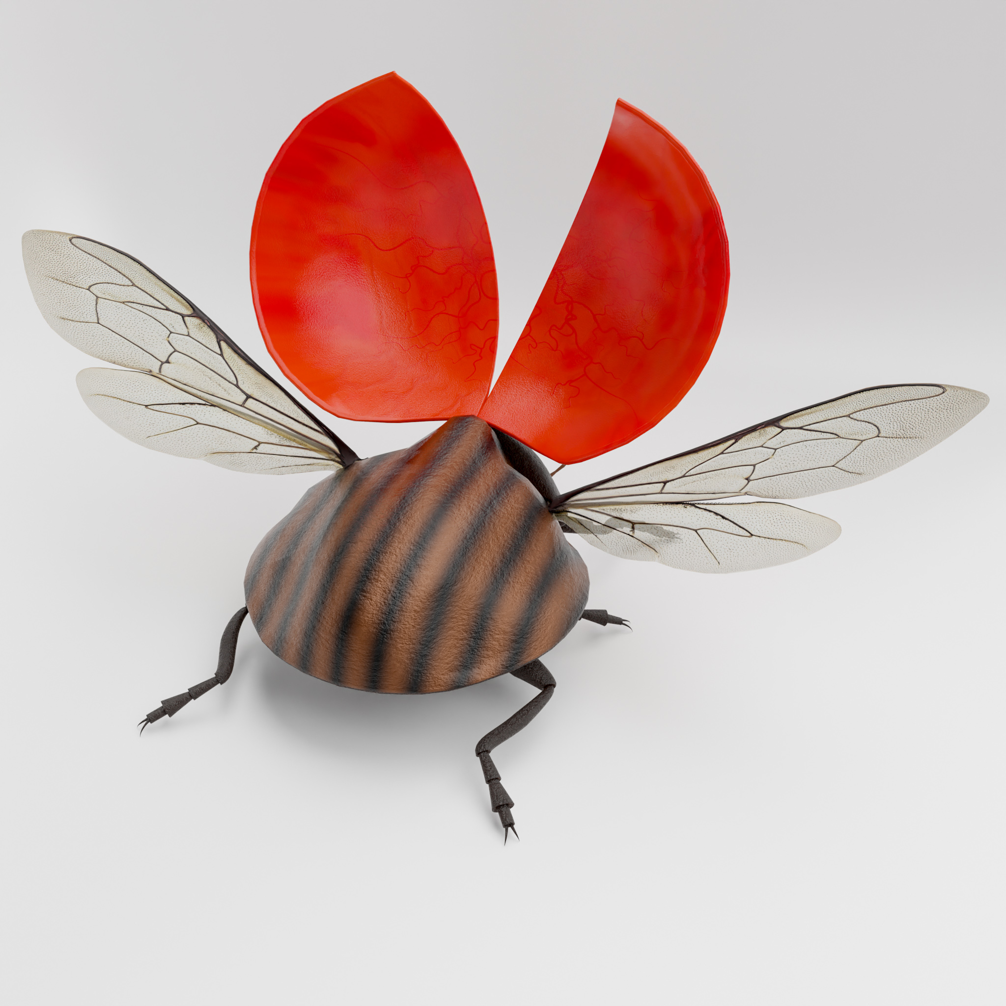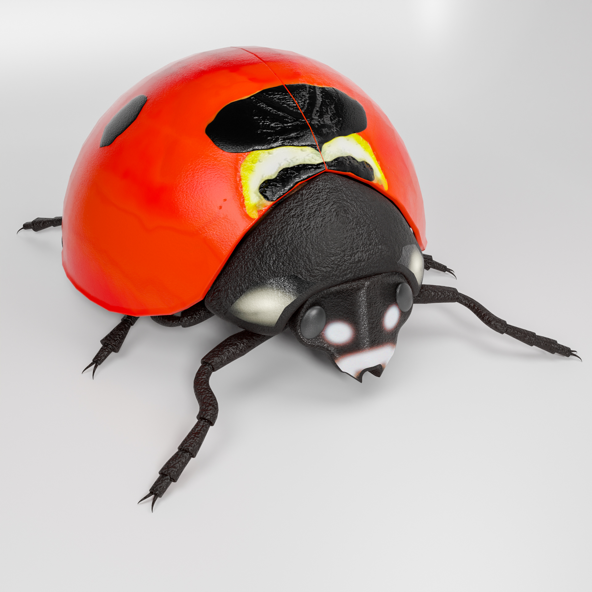 dieser ladybug ist voll geriggt, du kannst die Klappen öffnen und die Flügel entfalten, der kragen und der Kopf sind auch voll beweglich. einige Posen sind schon in der Posen bibliotheke vorbereitet. ideal um den Käfer zu untersuchen oder animationen zu machen.