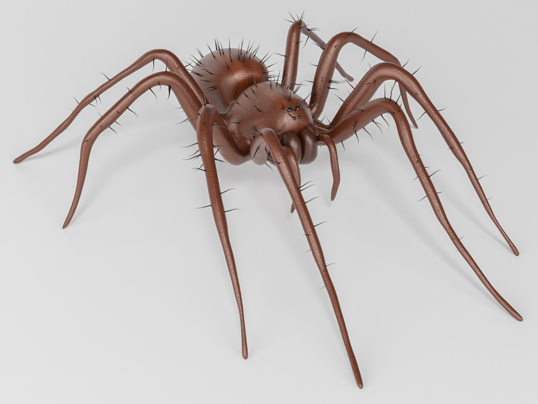 Ein einfacher Fishing spider, die Spinne ist prozedural, vollständig geriggt und mit Partikelhaaren ausgestattet.
