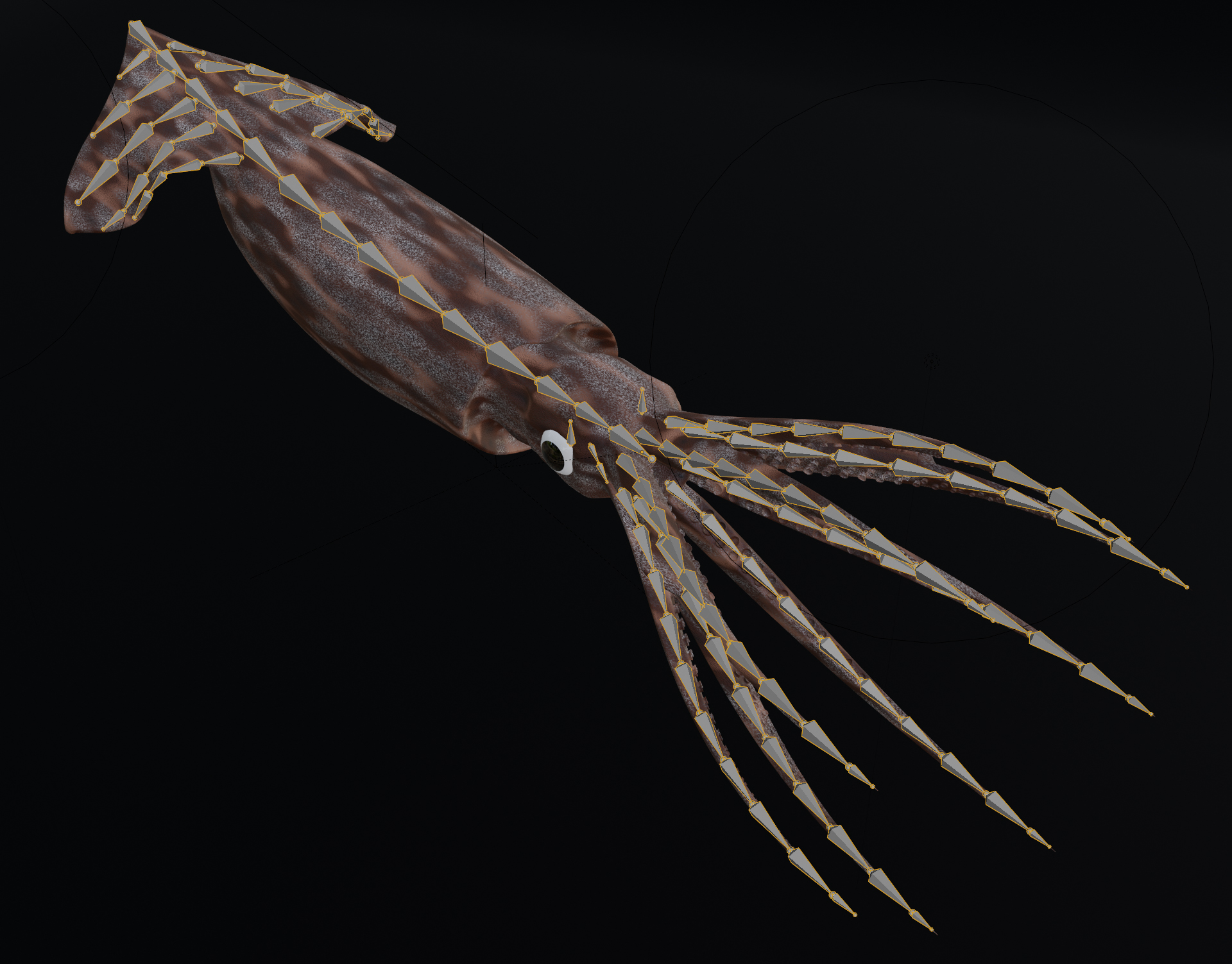 Octopus procedural bemalt, um dieses super flexibles Tier beweglich zu machen habe ich 126 B-Bones eingesetzt davon aleine 80 stück für die Tentakeln. dadurch ist das Modell sehr gut für Animation und Posing geeignet. 4 posen sind bereits in der pose Libary gespeichert.