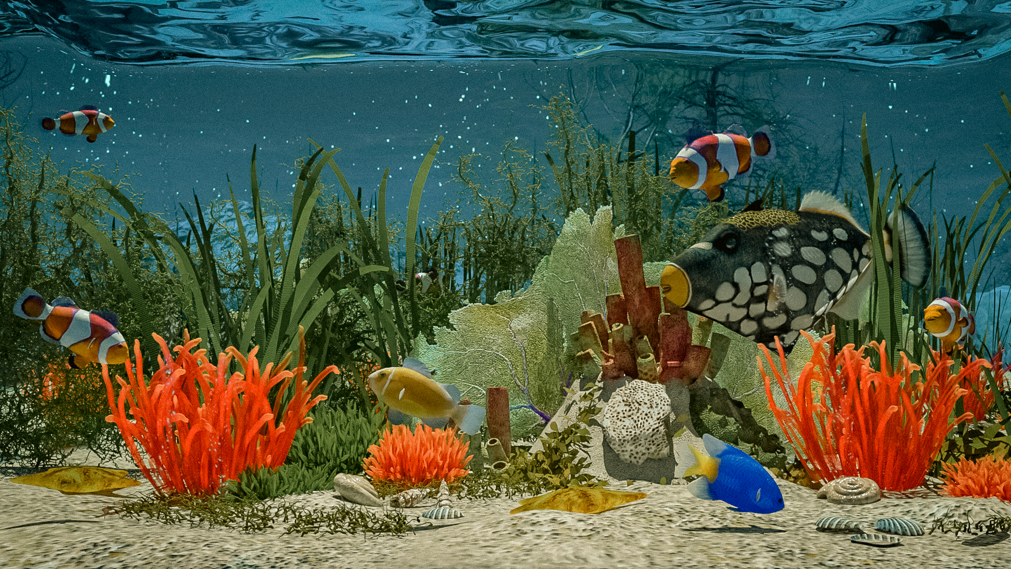Das Aquarium-Bild habe ich nun noch einmal mit anderen Wasser gerendert.