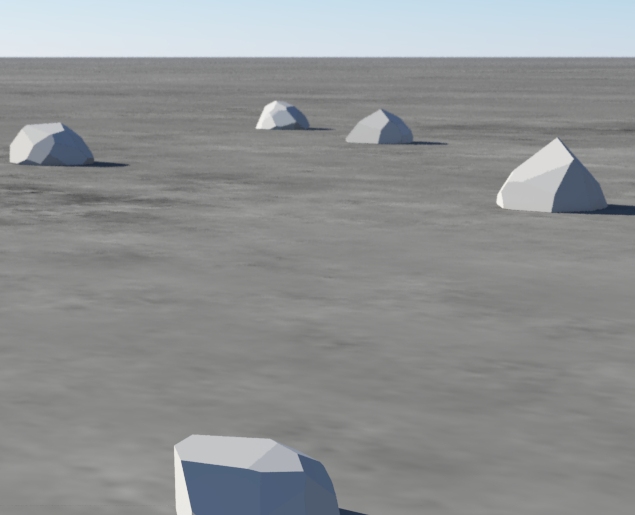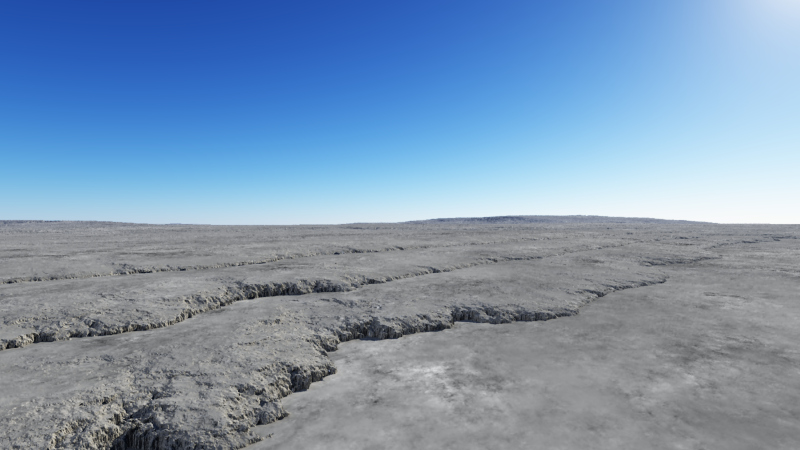 Für die Einstellungen kann eine einfache Testdatei erstellt werden, die ein schnelles Rendern einer kleinen Testreihe ermöglicht und für ähnliche Motive genutzt werden kann. In der Testszene braucht nichts weiter enthalten sein, als einige Messpunkte auf der flachen Oberfläche des Planeten. Als Messpunkte eignen sich z.B. Gesteinsbrocken (Rock-Objekts), bei denen lediglich Number of Faces erhöht werden könnten, um genügend scharfe Kanten zu erhalten.
