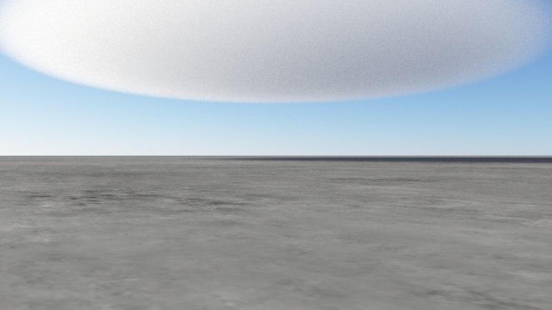 Für die Beispiele wurde ein Anfangsradius von 280 Metern gewählt, die Position der Render Kamera blieb mit einer Entfernung von 280 Metern vom Mittelpunkt der Cloud unverändert. Danach wurde einzig der Radius schrittweise auf 292 Meter erweitert, so das die Kamera am Ende sich zwar bereits 12 Meter in der Cloud befand, aber noch nicht in einem Bereich, der die Sichtweite im Nahbereich beeinflusste.