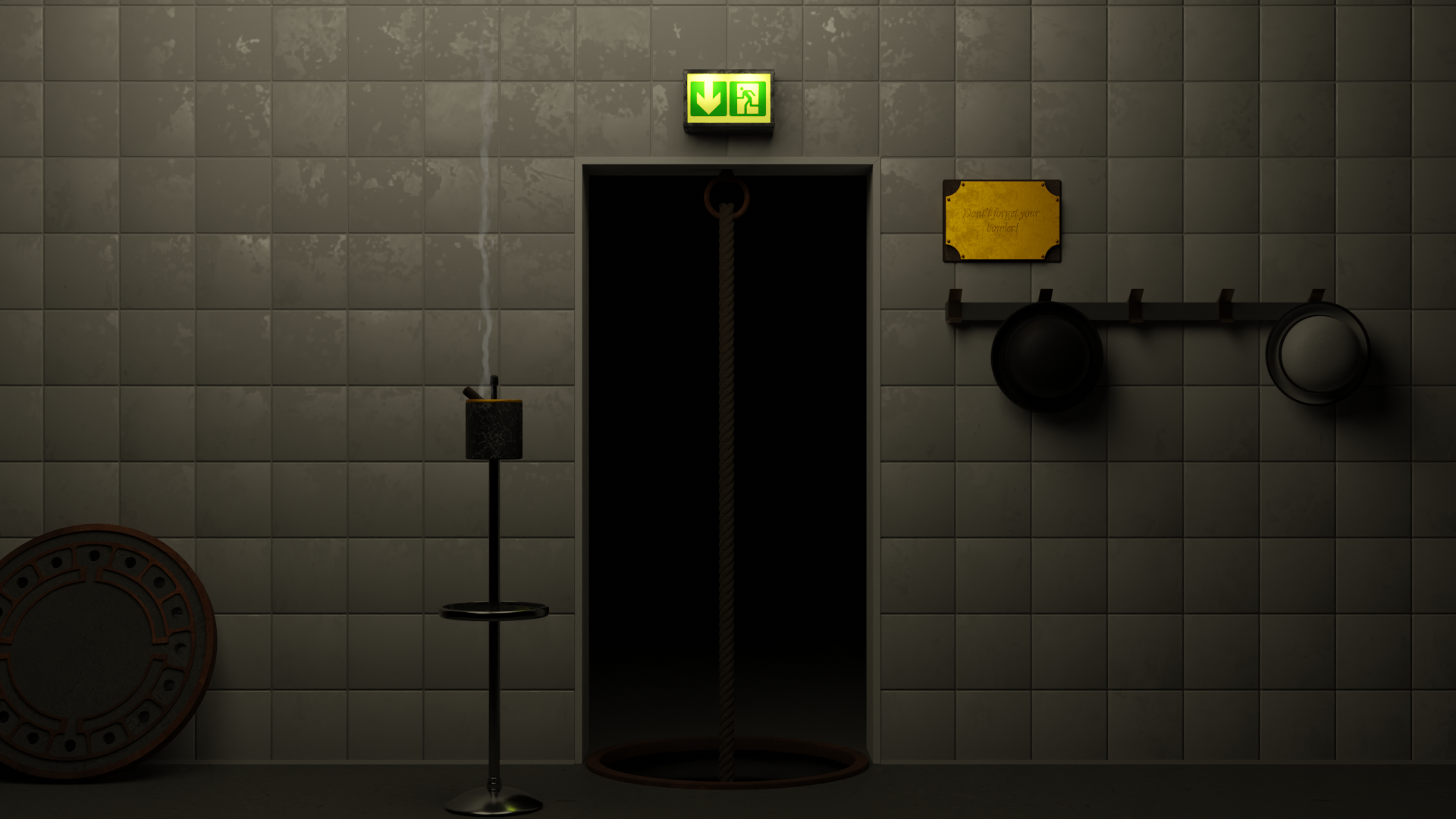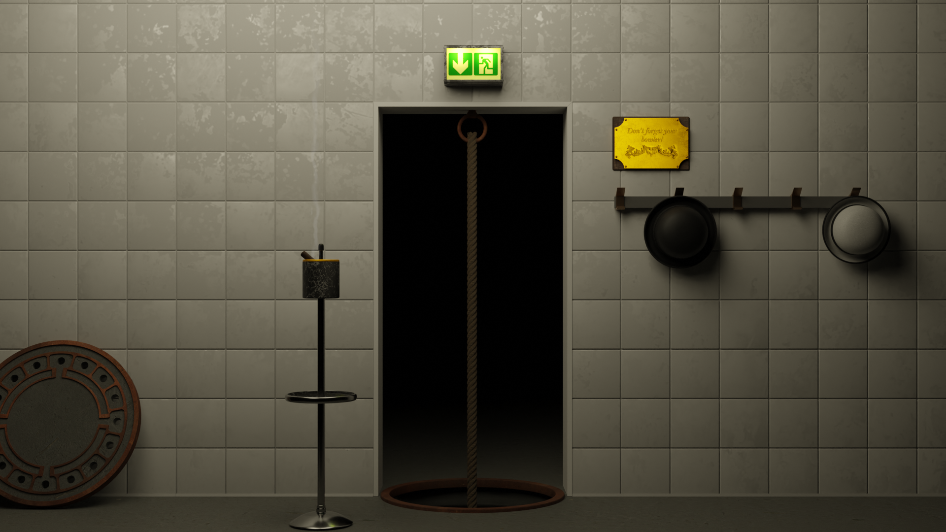 Für den letzten Blendpolis Wettbewerb mit dem Thema Notausgang habe ich eine Szene angefangen.