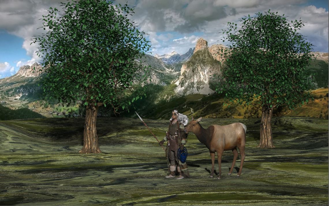 Da sind im Hintergrund Berg 3D-Modelle u/o Hintergrund-Bilder,