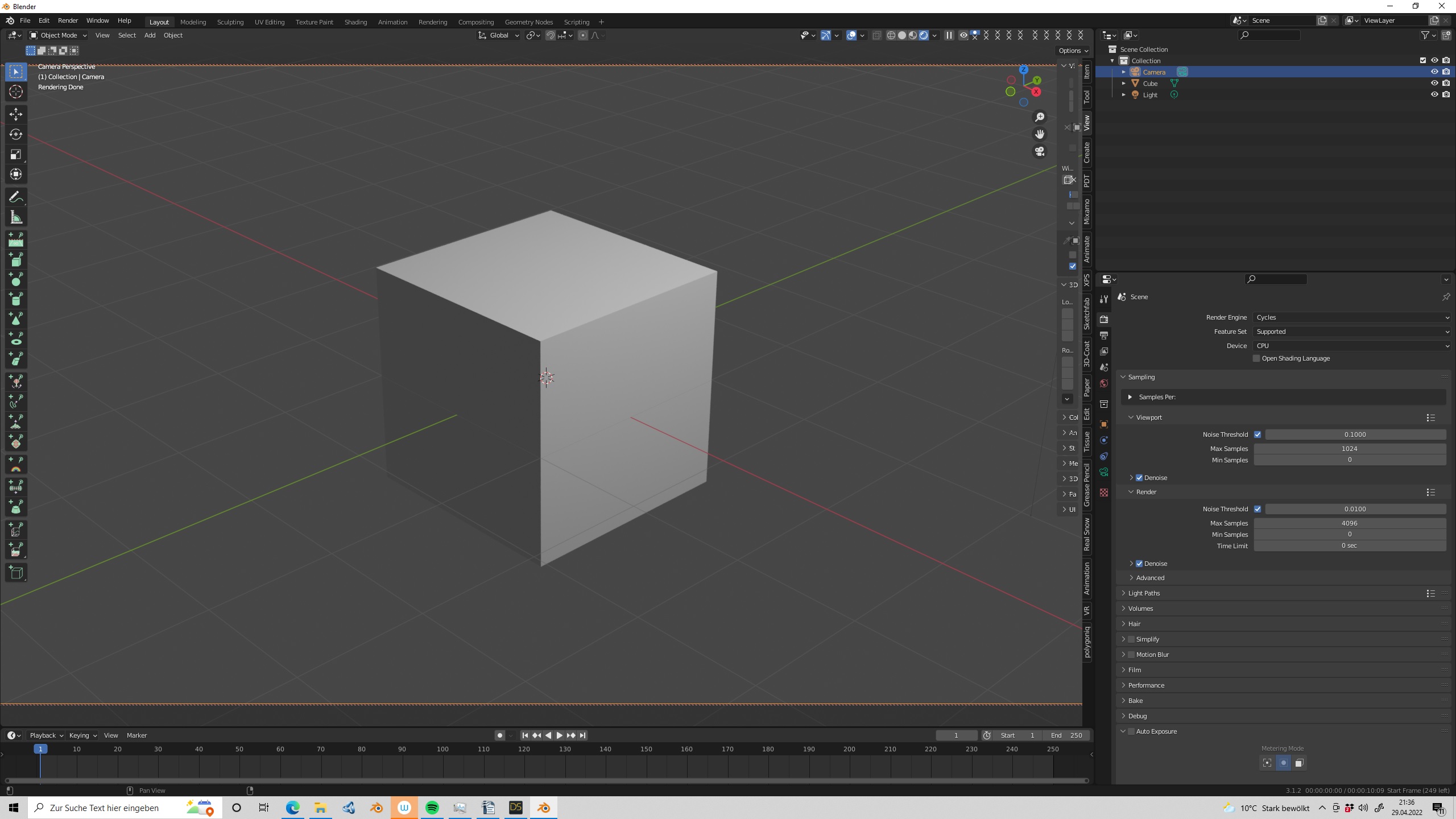 • Ich weiß nicht was Du mir mit dem angehängten Bild zeigen willst. Du hast zwar oben im Outliner die Camera ausgewählt, aber unten in den Properties nicht.