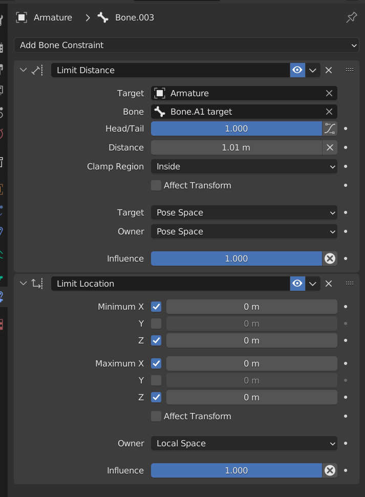 Ich habe da ein problem mit meinem rig, und zwar habe ich mit den constraint Limit Distance und Limit Location die oberen knochen in bezug zu den jeweiligen schlitten und den unteren angelpunkten gesetzt. aber wenn der winkel schwischen den punkten gröser wird verlängert sich der absand der stangen zu der gondel. ich weis nicht wie ich es besser beschreiben soll. hier ist ein view port renderer der situation. was kann ich da anders machen das es klappt?
