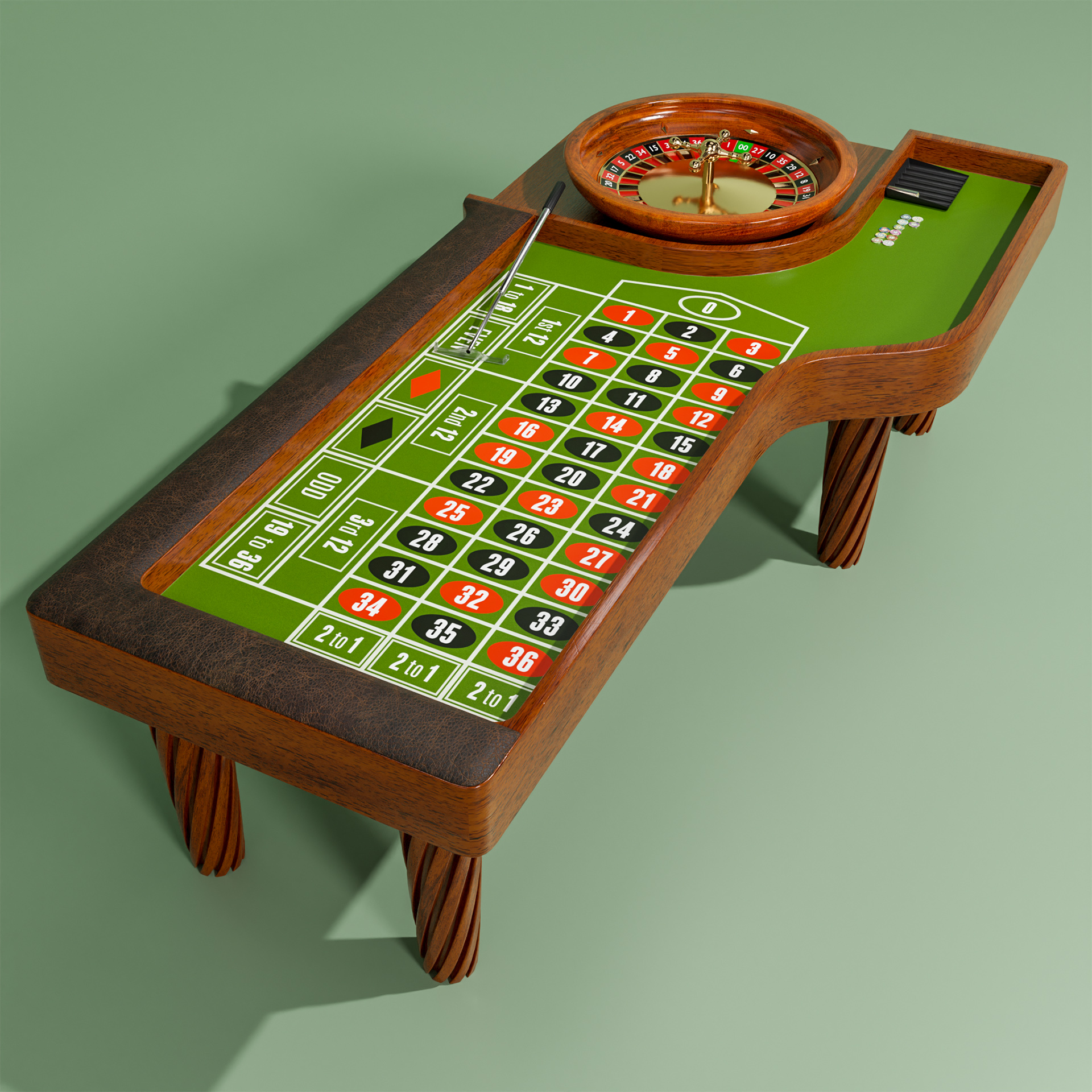 Der Roulette Tisch sieht so echt aus! Schön lackiert und die Beine fein gedrechselt!