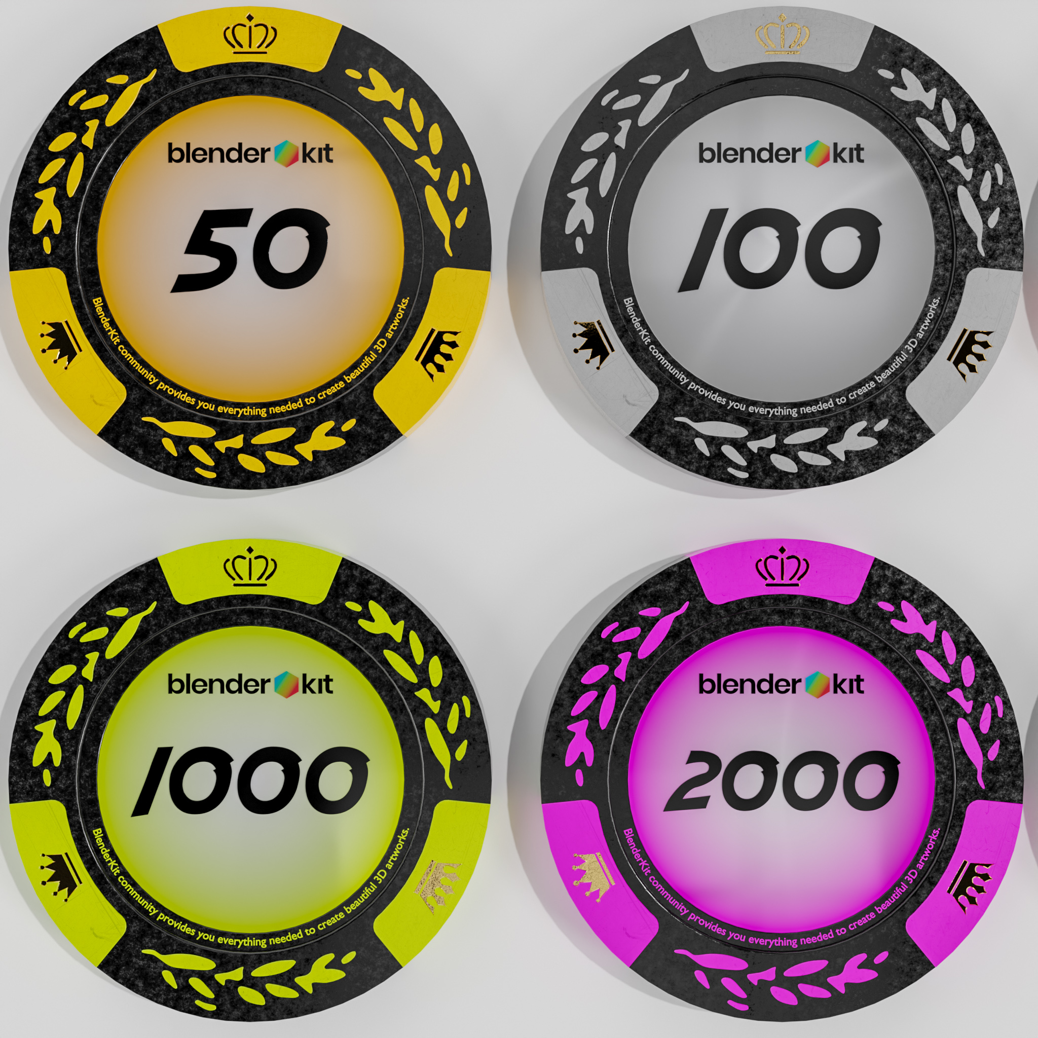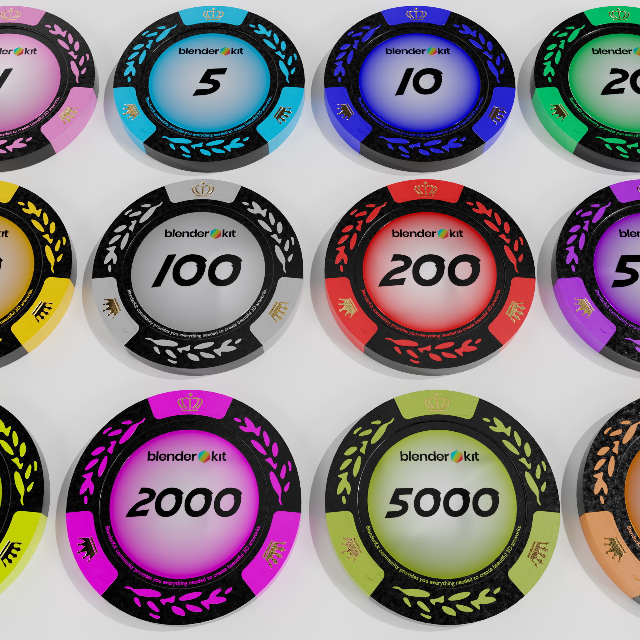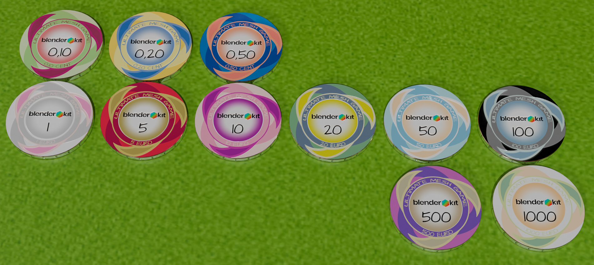 Ich hab mich heute Nacht noch einmal an den Computer gesetzt und einen neuen Satz jetons erstellt die nicht so textur lastig sind. dieser jeton satz (12 st.) ist 100% procedural.