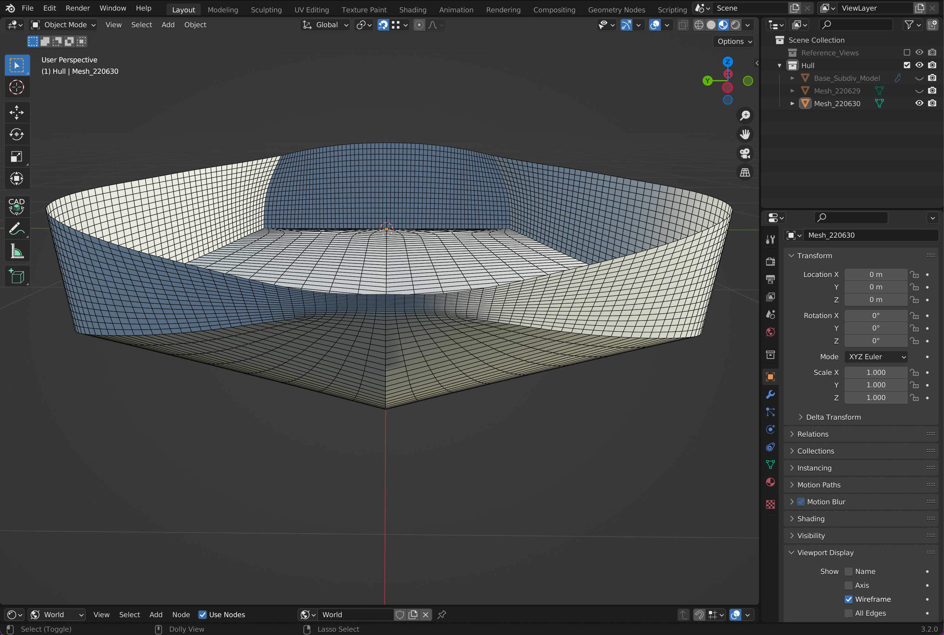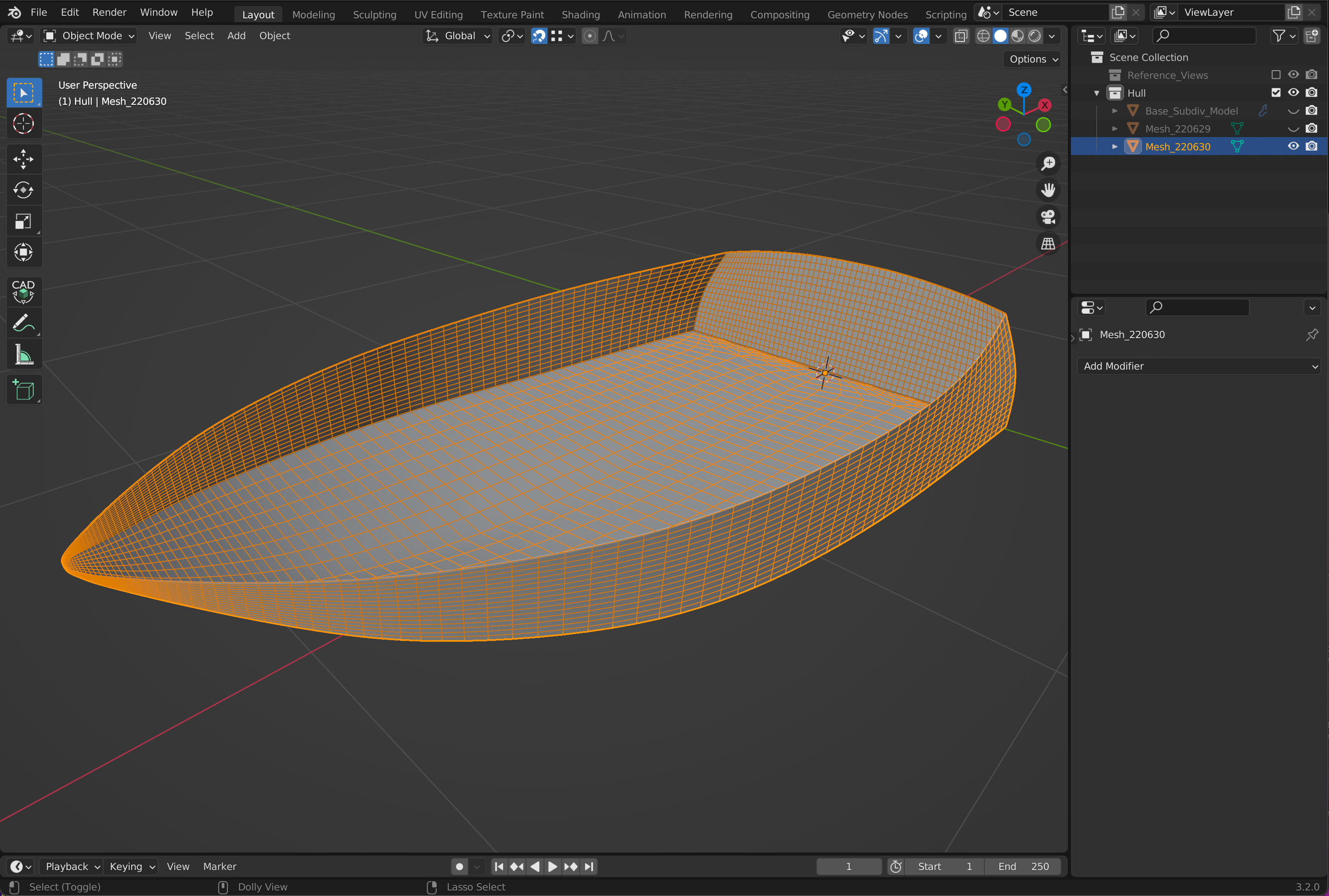 Es gibt eine Methode, Schiffsrümpfe zu modellieren, bei der weder NURBS noch Bézier Curves zum Einsatz kommen, sondern mit dem sehr interessanten SubDivision Algorythmus von Catmull/Clarke.