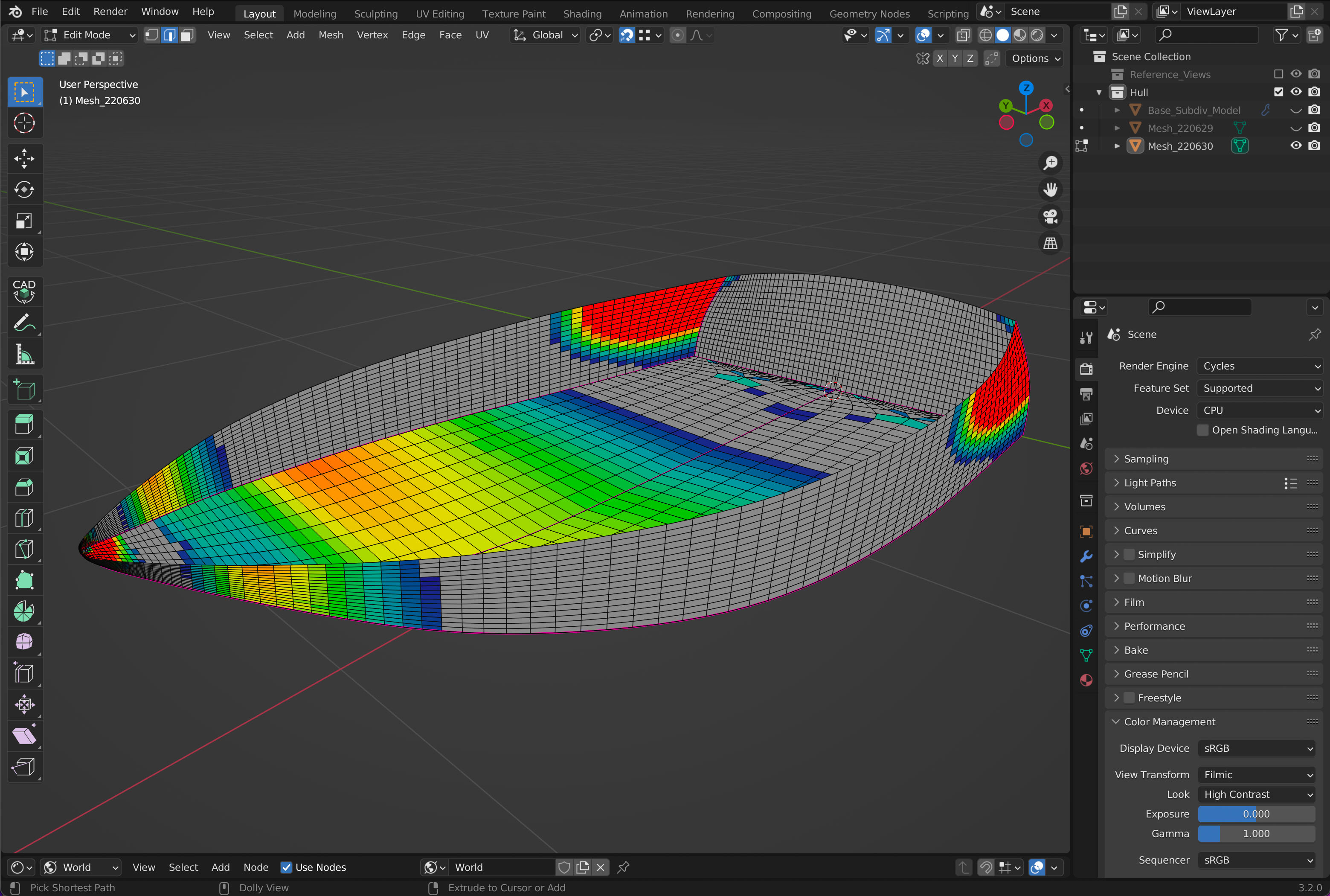 Übrigens (das könnte auch rjordan interessieren der die vielen tollen Bootmodelle in der Virtuellen 3DB Werft erstellt hat ) bin ich bei der Nachforschung bezüglich einem hochwertigen Workflow für Bootrumpf Modelling definitiv zur Überzeugung gekommen, das die SubDivision Curvature den "alten" NURBS vorzuziehen sind. Zumindest in Blender, da die NURBS Tools einfach zuwenig Möglichkeiten bieten.