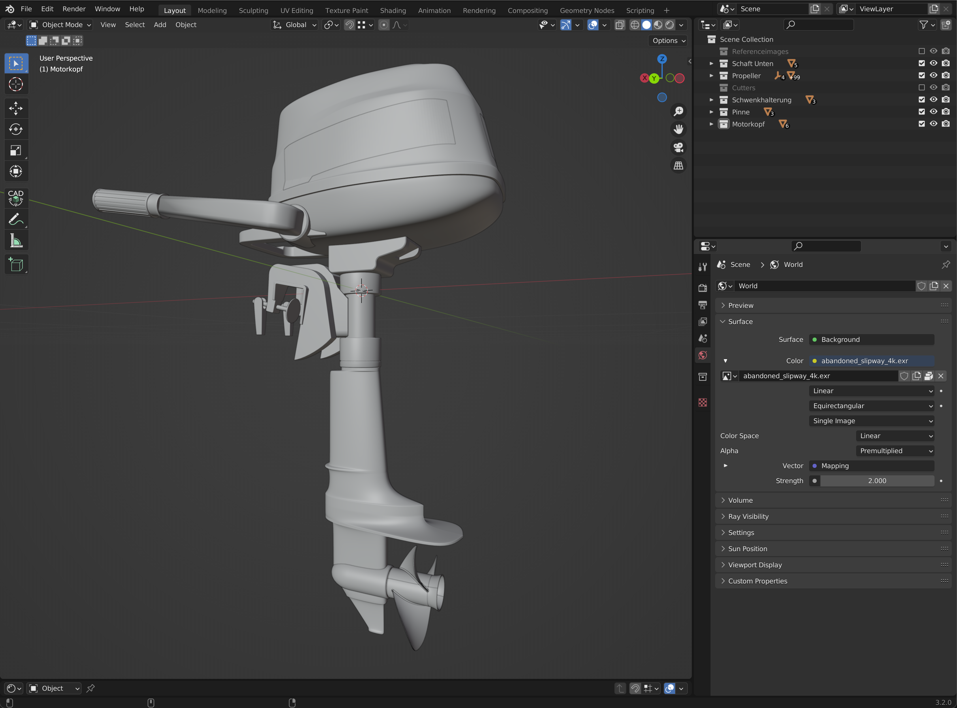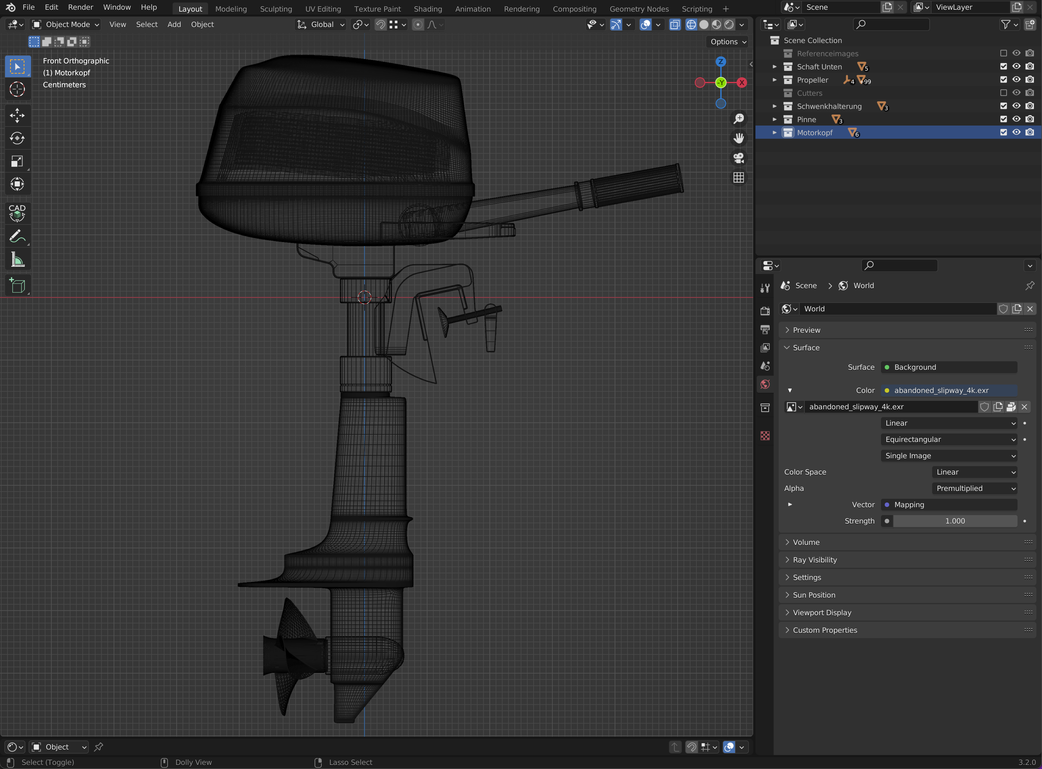 nachdem ich mich in letzter Zeit viel mit Bootsrumpf Modeling beschäftigt habe, kommt nun ein Aussenborder Motor.