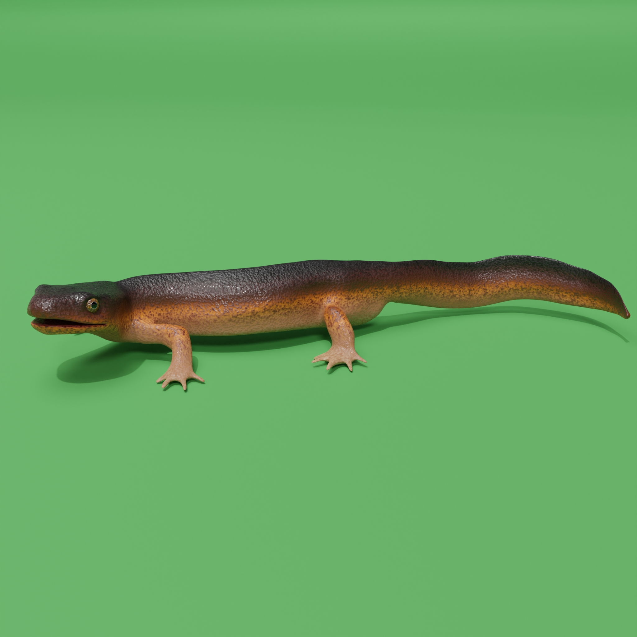 Das Modell ist geriggt und für die Animation vorbereitet. Es ist prozedural texturiert und daher sehr klein im Speicherbedarf. Der Schwertschwanzmolch (Cynops ensicauda) ist eine Art echter Salamander aus Japan. Es wurde kürzlich auf Japans Rote Liste der bedrohten Amphibien gesetzt.