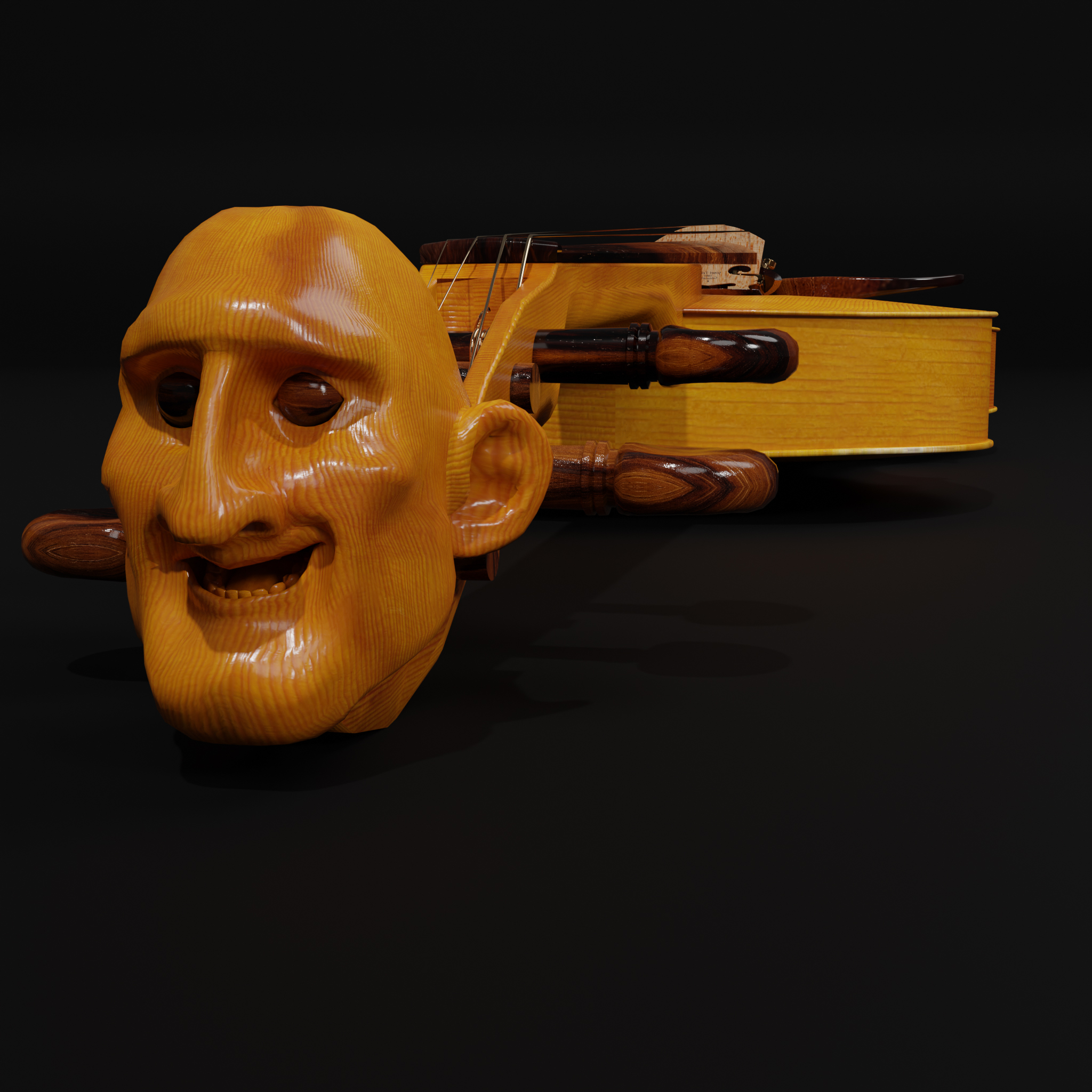 Berta kam gestern Abend an und wollte unbedingt an meiner Violinen Kampanie teilnehmen, dass hat Sie nun davon, der alte Holz Kopf! anstelle eines Pompösen Bühnen Auftrittes habe ich Sie als Protagonist eingesetzt und Sie prominent an den Kopf Einer Violine gebracht! trotzdem Freut Sie sich darüber und konnte nur Lächeln.