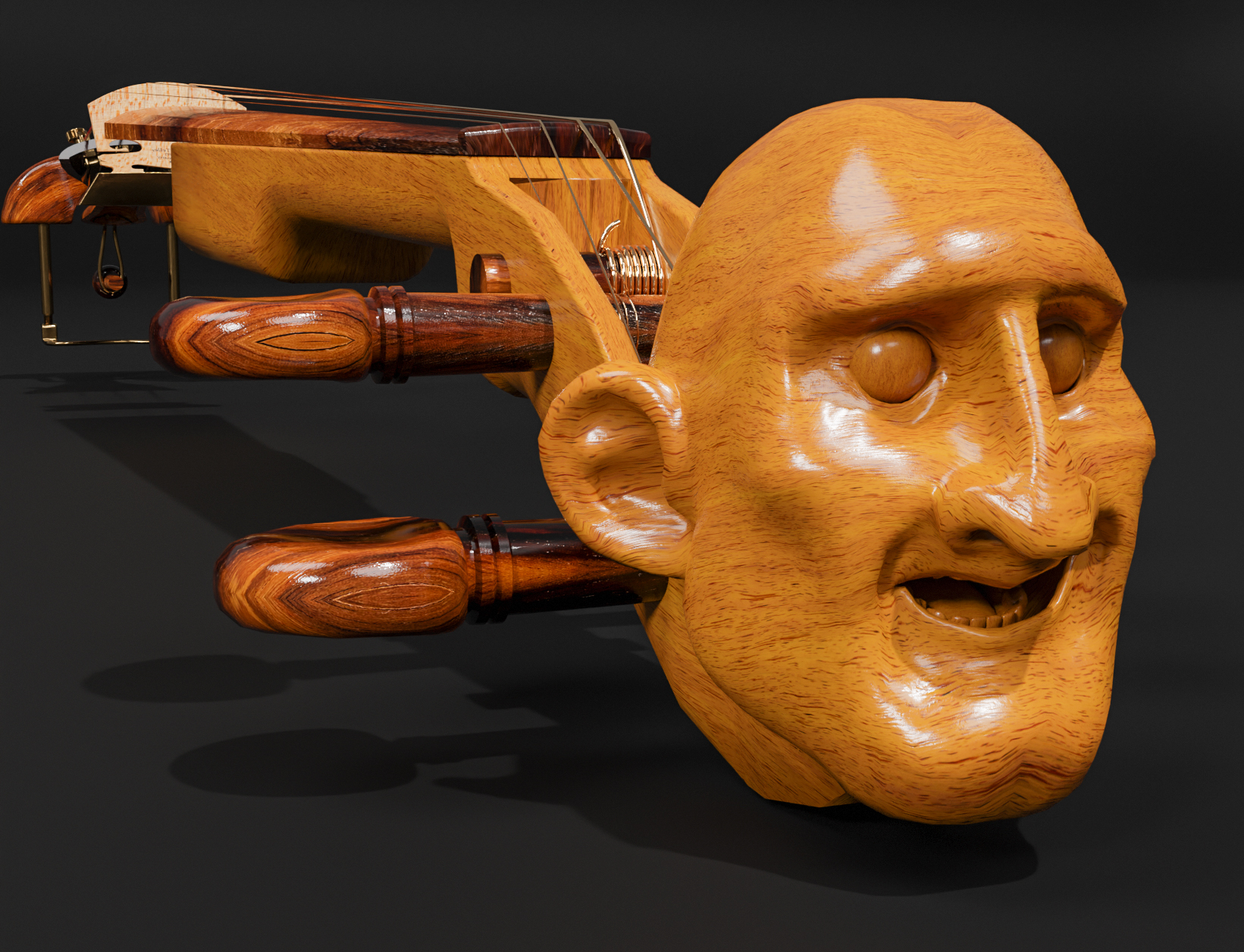 Berta kam gestern Abend an und wollte unbedingt an meiner Violinen Kampanie teilnehmen, dass hat Sie nun davon, der alte Holz Kopf! anstelle eines Pompösen Bühnen Auftrittes habe ich Sie als Protagonist eingesetzt und Sie prominent an den Kopf Einer Violine gebracht! trotzdem Freut Sie sich darüber und konnte nur Lächeln.