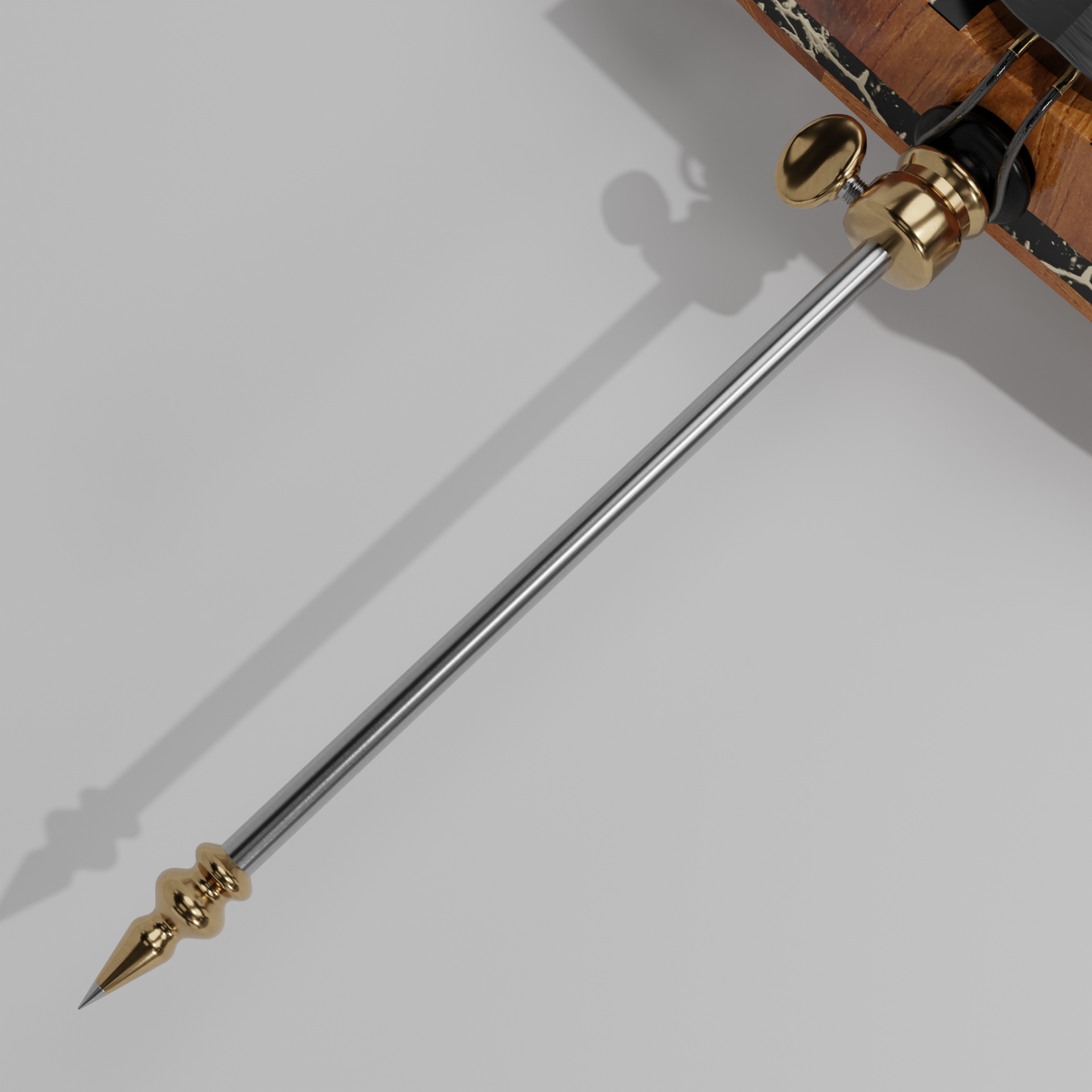 also hier ist das Modell eine E Cello mit Stachel wobei bei einem E Cello ist er nur zum halten der Saiten und des Instrumentes.