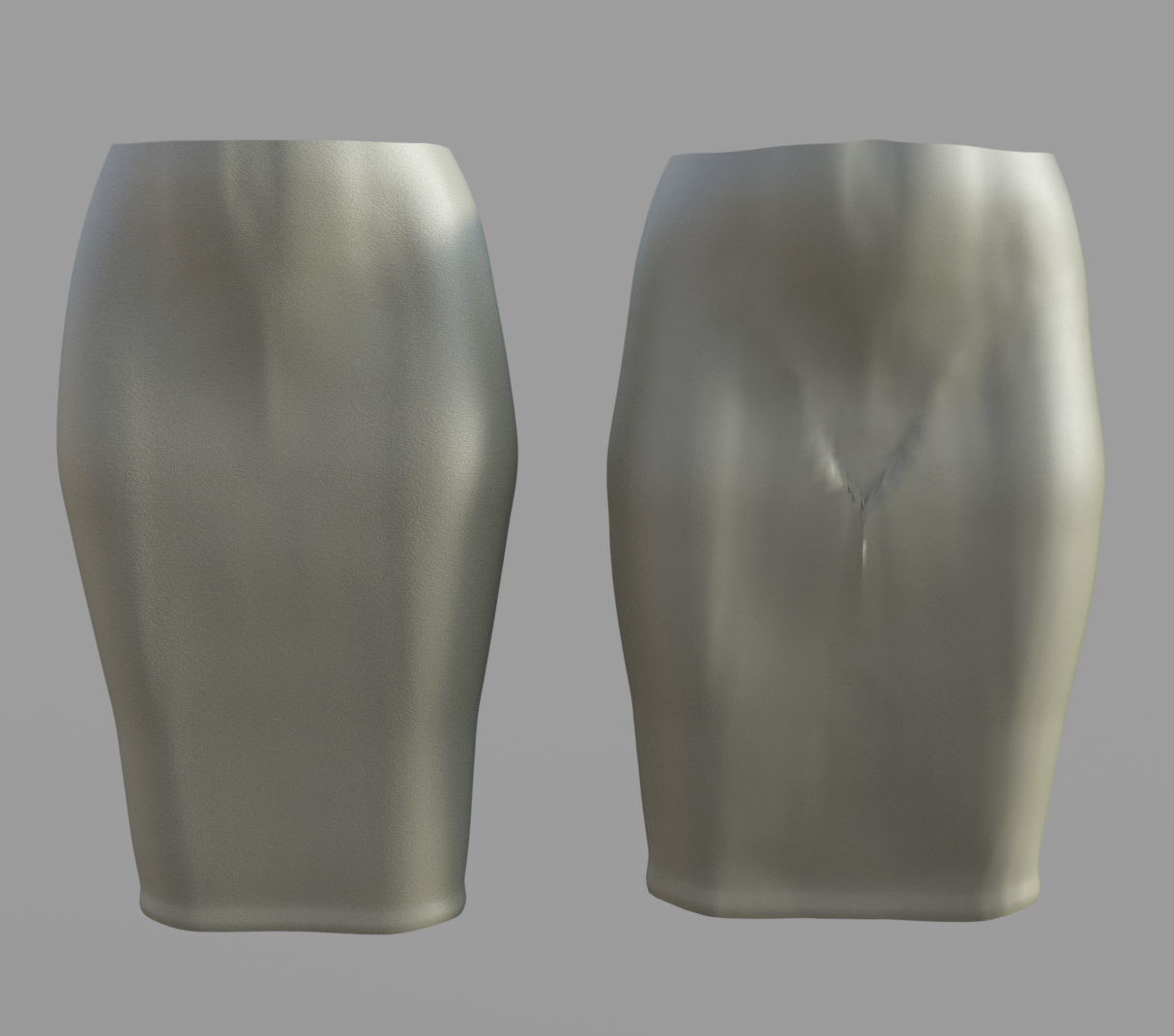 Links Original V4 Office Skirt rechts nach Umwandlung mit TransferUtility an G3F mit Falten etc. im Schrittbereich.