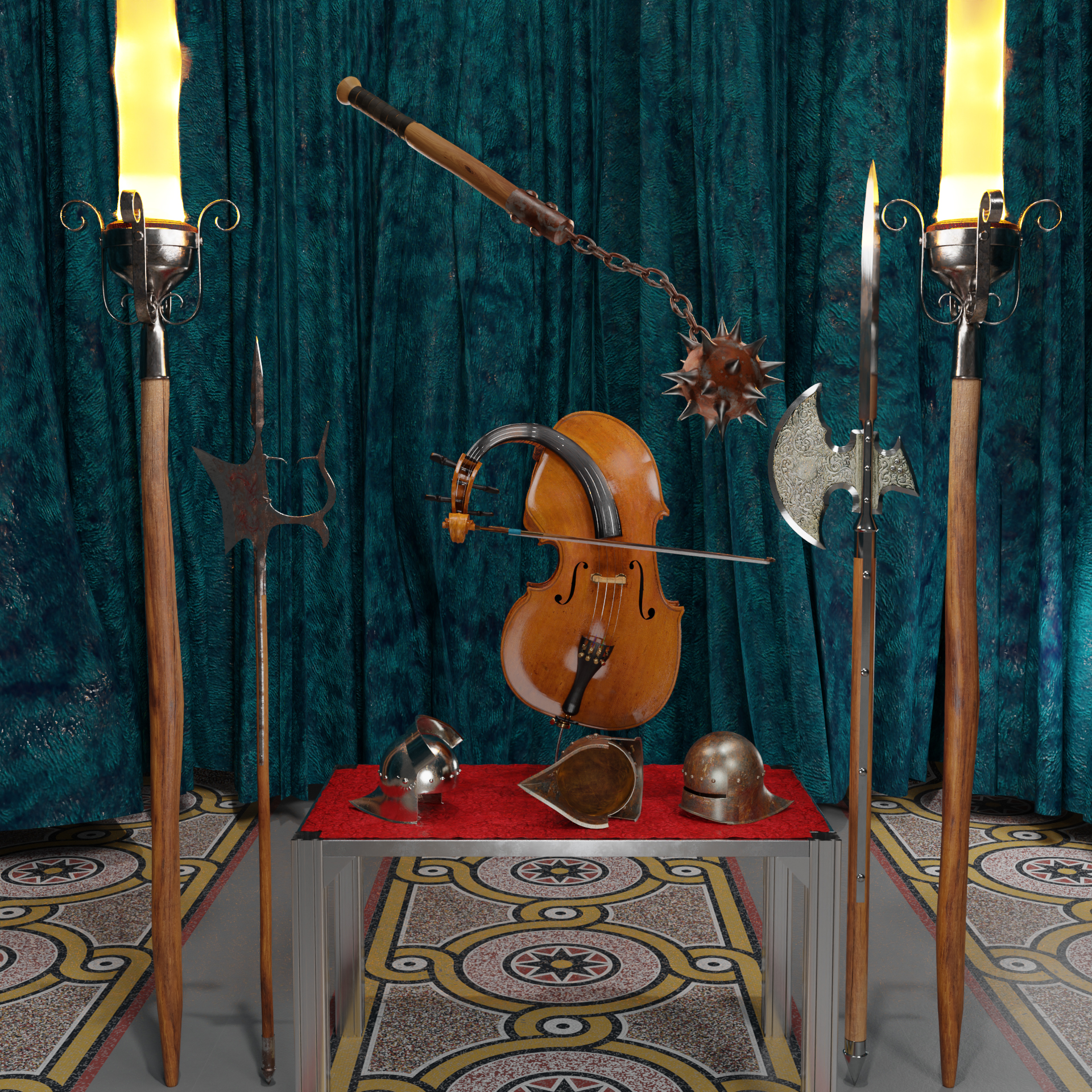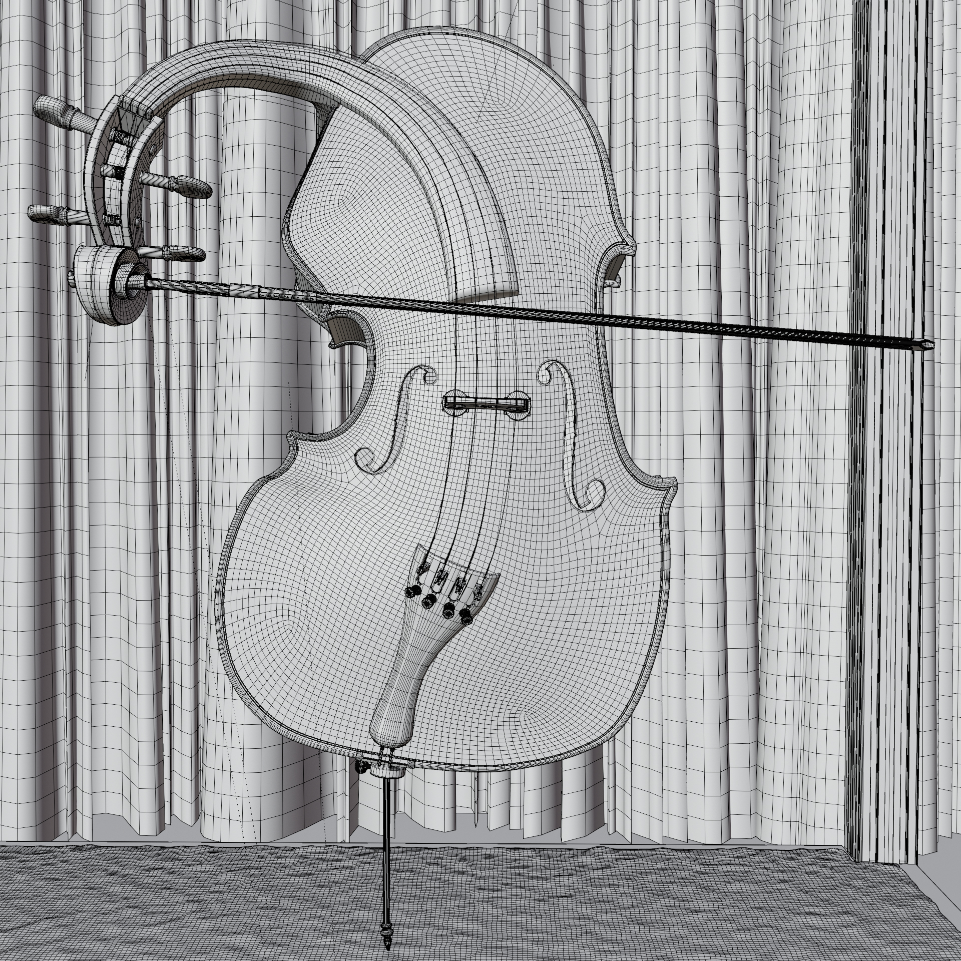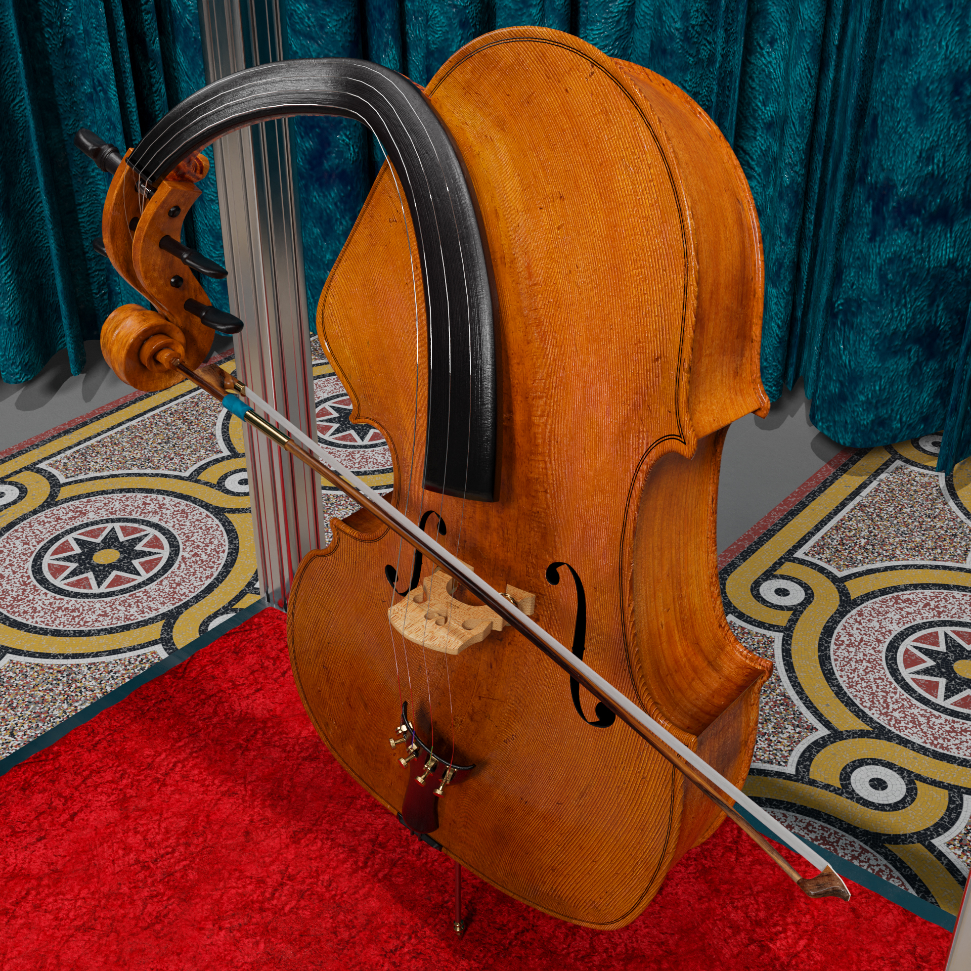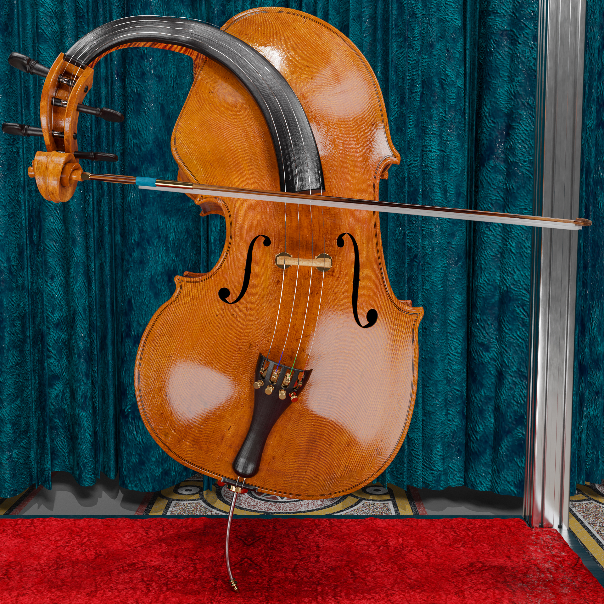 es wurde bemängelt das die Saiten zu wenig Auflösung haben. beim genauen hinsehen ist es mir auch aufgefallen und das Cello war auch an anderen stellen zu gering führ eine schöne curve aufgelöst. jetzt habe ich die anzahl der edges insgesamt verdoppelt und bei den Saiten verzehnfacht auserdem habe ich die auflösung der steuer curve verdreifacht und den Cellostachel mit in die Curve genommen. es dauert zwar beim rendern jetzt fast eine minute, und erzeugt 4.7 GB Grafig speicher beim rendern aber es ist ja eine einzel scene und da geht es schon. animationen möchte ich aber in der configuration lieber nicht rendern dann ist es so langsam wie mit belnder 2.4!